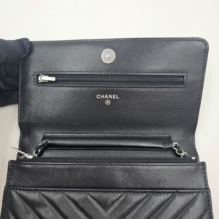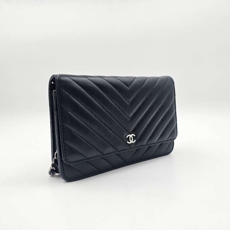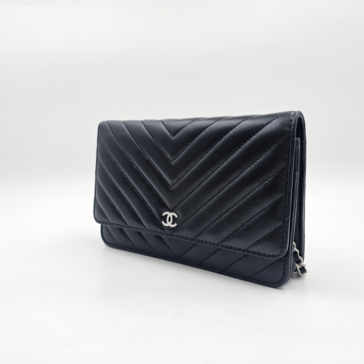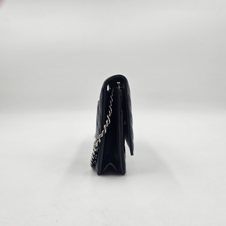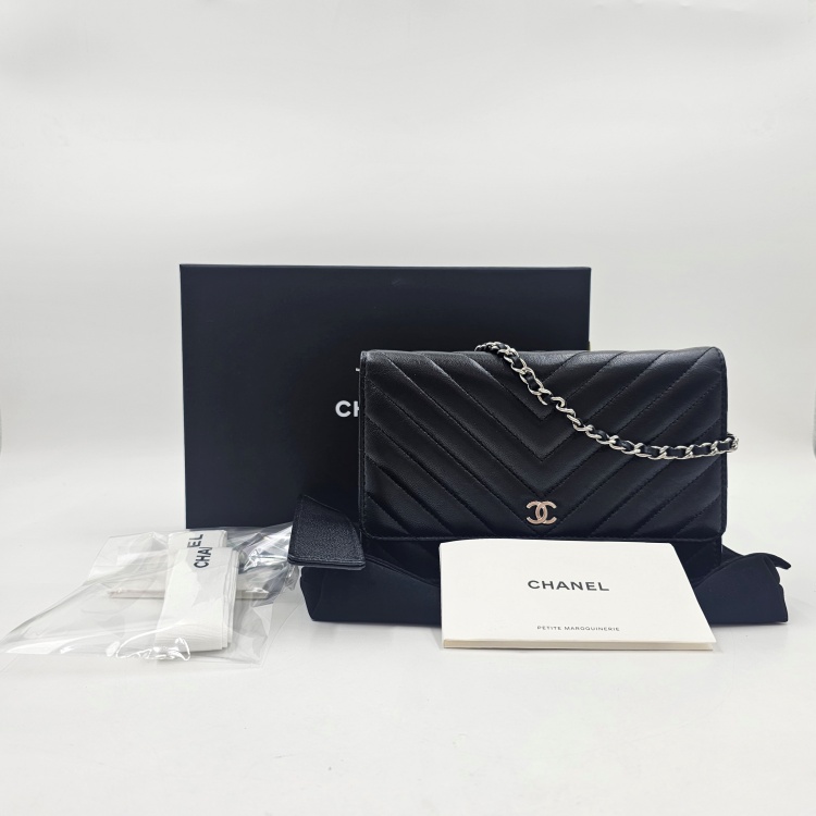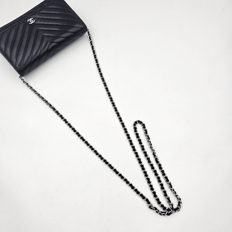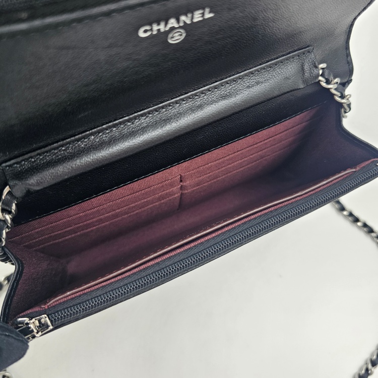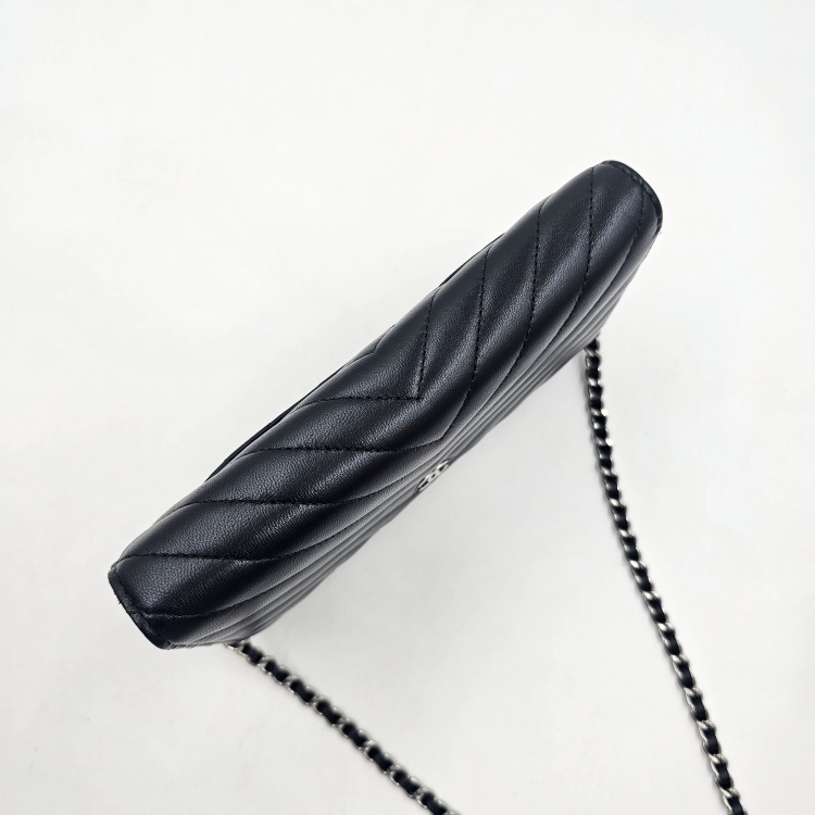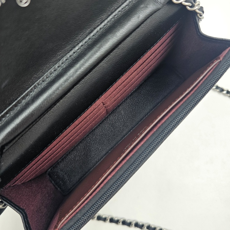 정면에 위치한 CC로고 디테일과 여닫이 금속, 체인 스트랩에는