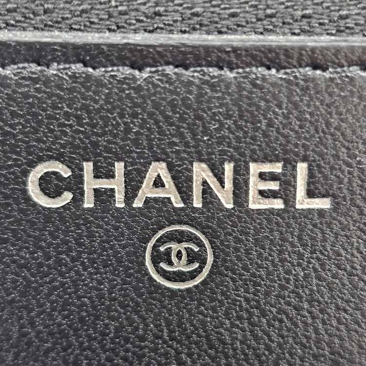 정면에 위치한 CC로고 디테일과 여닫이 금속, 체인 스트랩에는 생활 기스감이 옅게 확인됩니다.