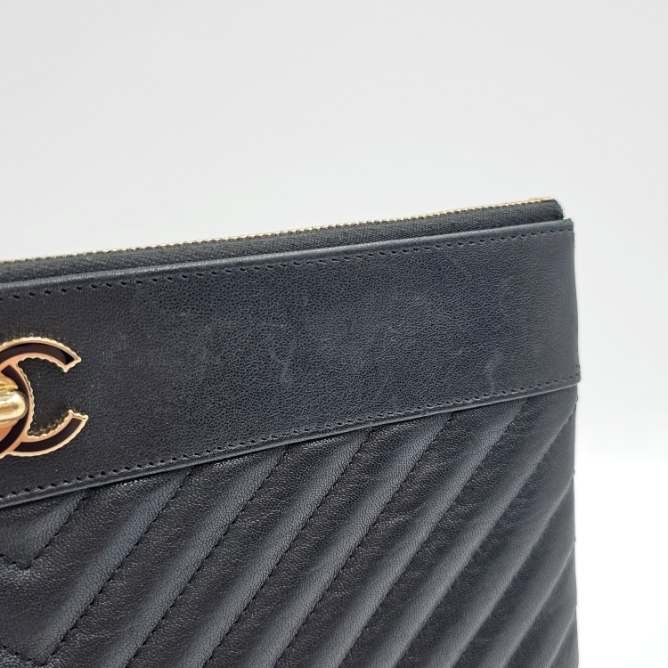 가방의 정면 중앙 상단 CC로고에는 잔 기스감이 옅게 있습니다.