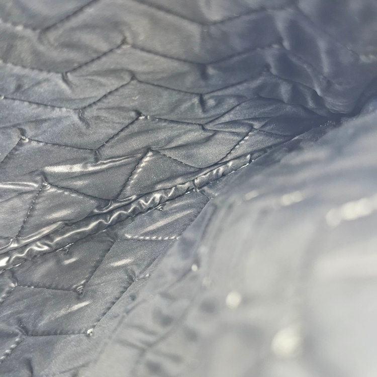 상단의 지퍼라인을 따라 약간의 변색감과 잔 보풀감이 보여집니다.