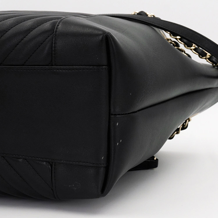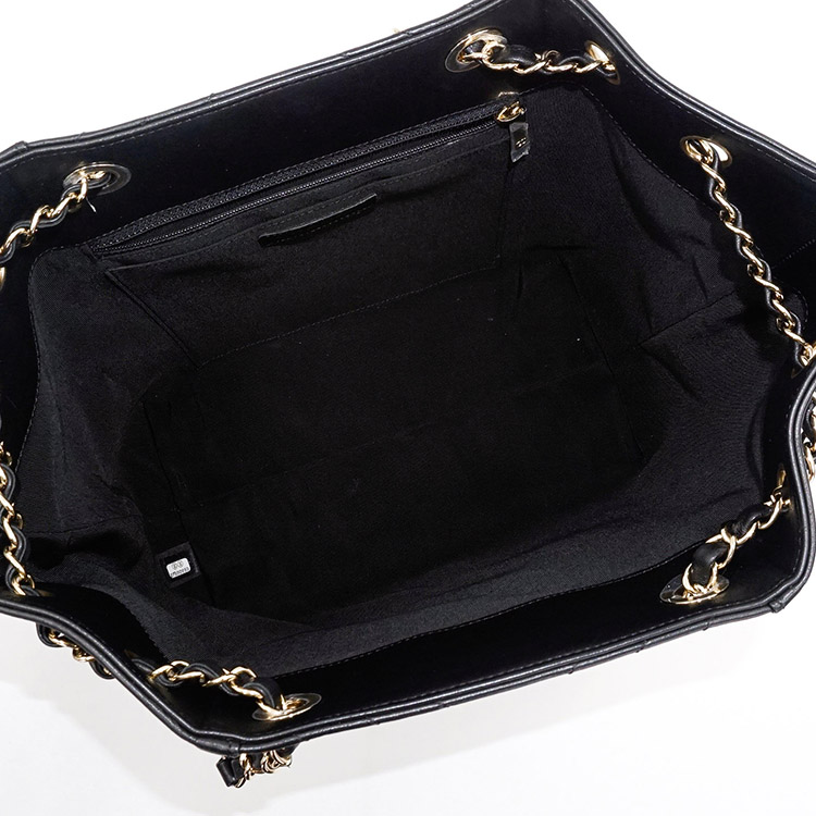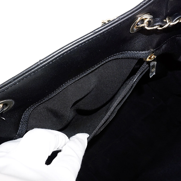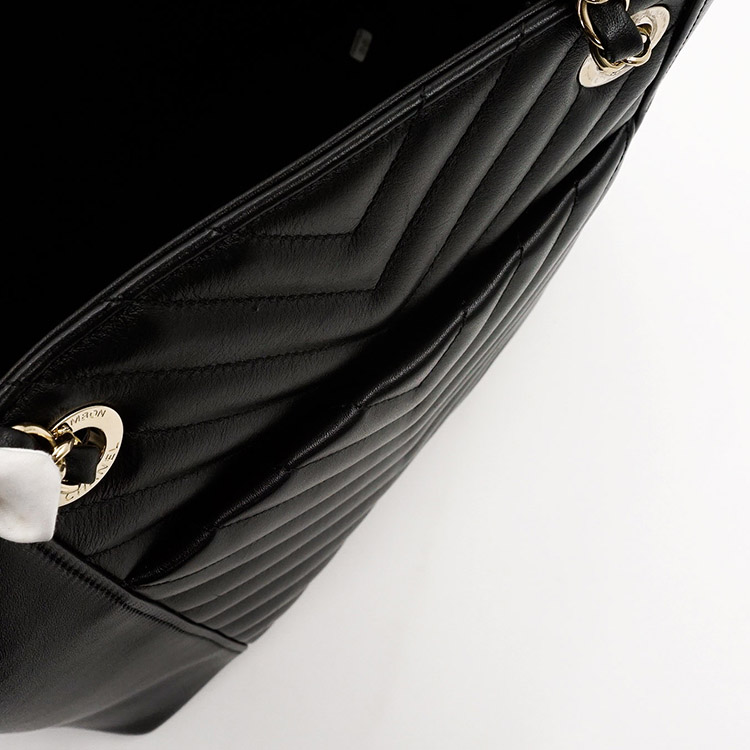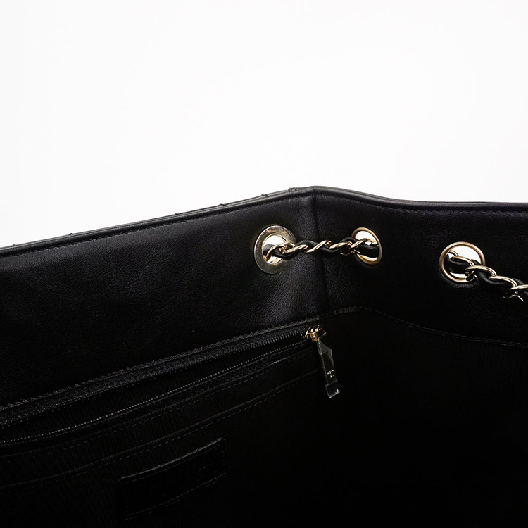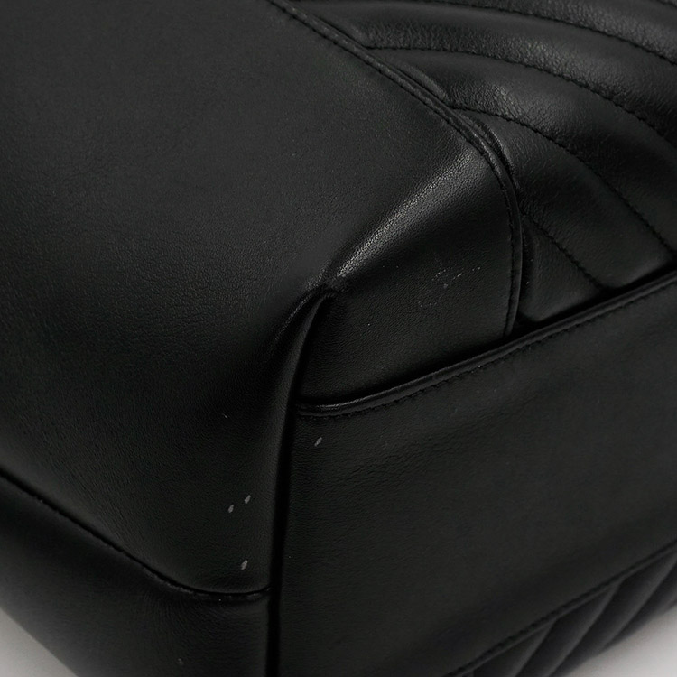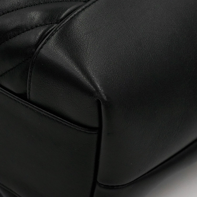 가방 내부의 뒷면 방향 로고 각인 오른쪽에 EL, CE의 금속 로고 프린팅이 지워져 있습니다.