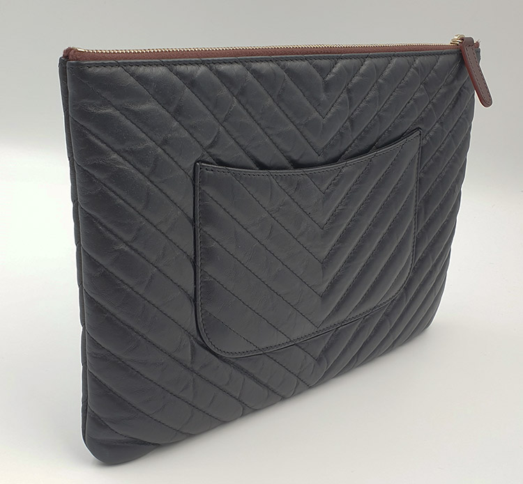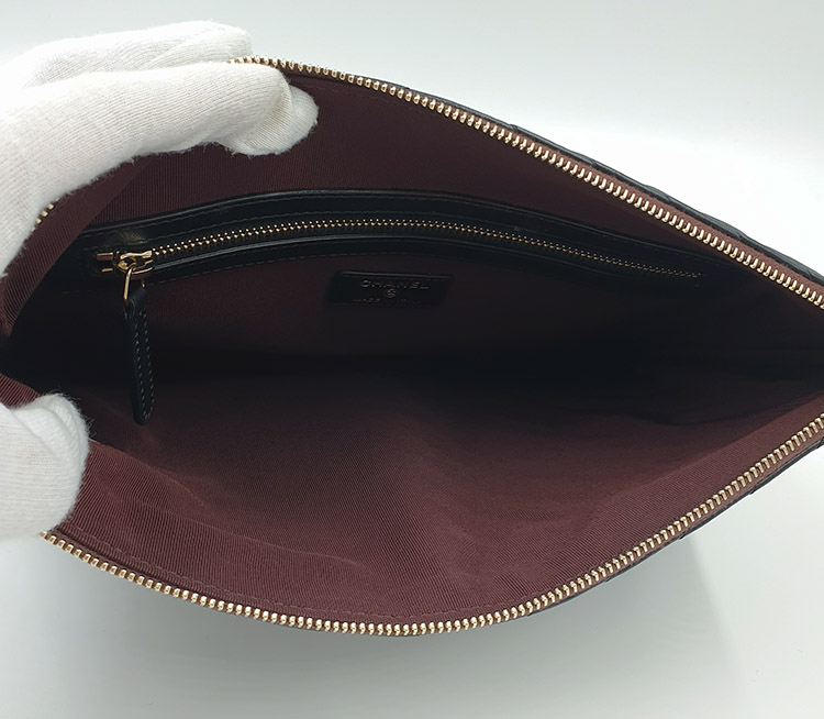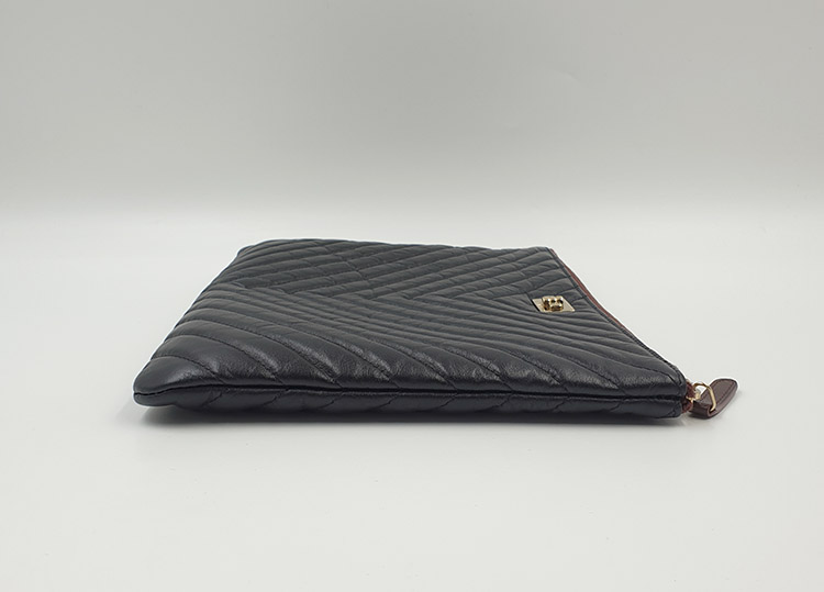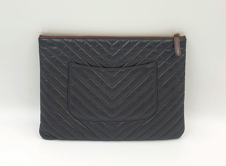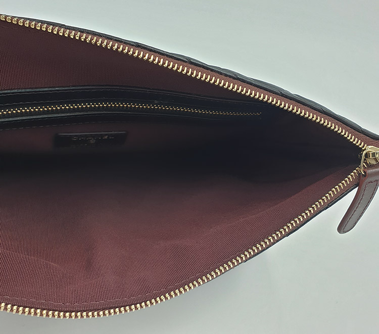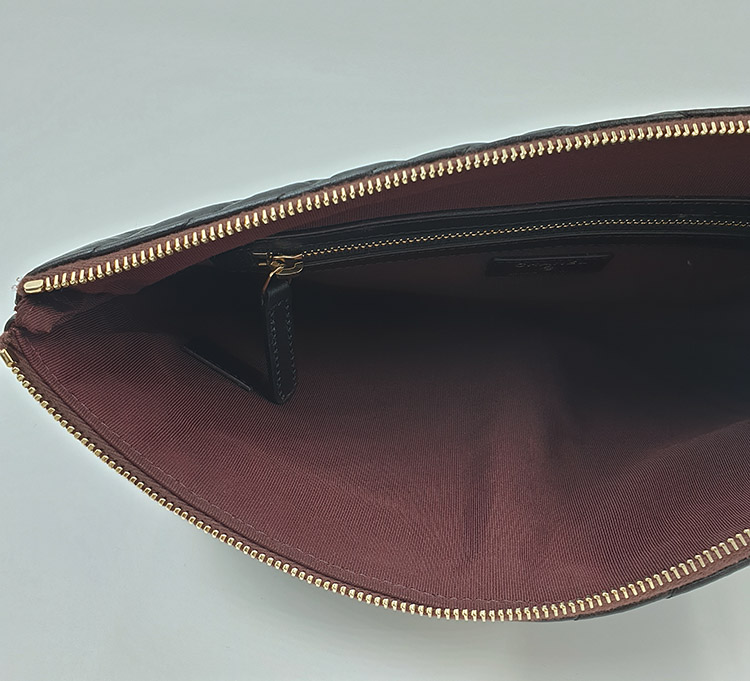 클러치 뒷면 기준 오른쪽 하단 모서리 부분에 하얀색의 미세한 이염이 있습니다.