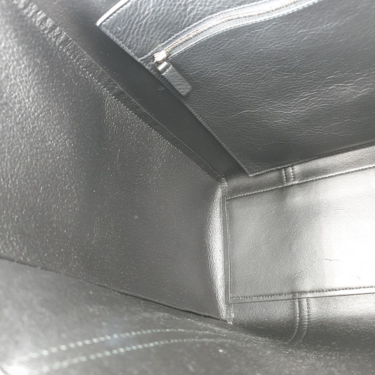 내부 안감에는 최소한의 생활감이 있으며, 포켓면 가죽 상단에 옅은 잔스크래치가 있습니다.