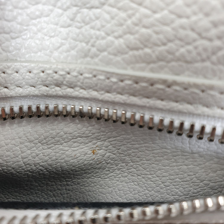 길게 나와있는 지퍼 왼쪽 안쪽면에 미세한 노란색 이염이 있습니다.