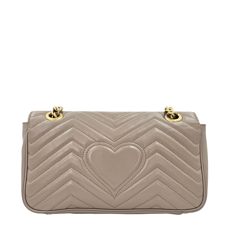 정면에 위치한 GG 로고를 비롯해 체인 스트랩과 여닫이 도트 등의 금속 디테일에