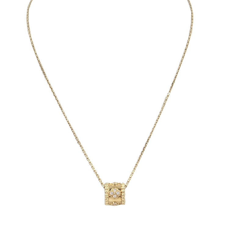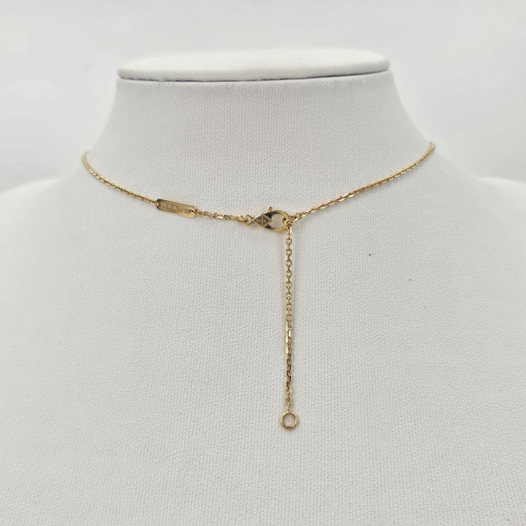 옐로우 골드 펜던트와 체인 네크리스의 광택감과 품질이 잘 유지되어 있습니다.