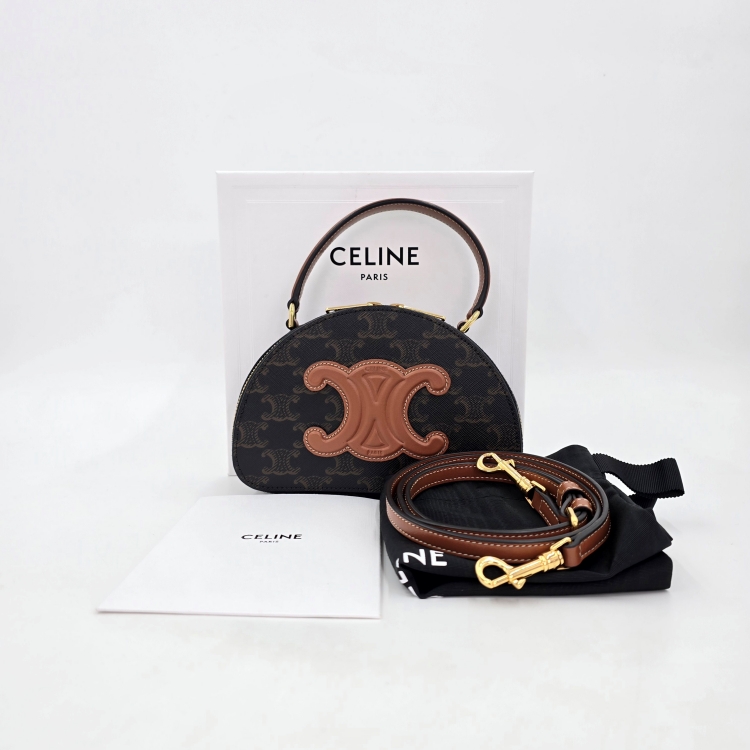 색상 / 소재 : 딥브라운 계열/트리오페 코팅캔버스, 브라운 계열/폴리에스터 안감, 금장 하드웨어