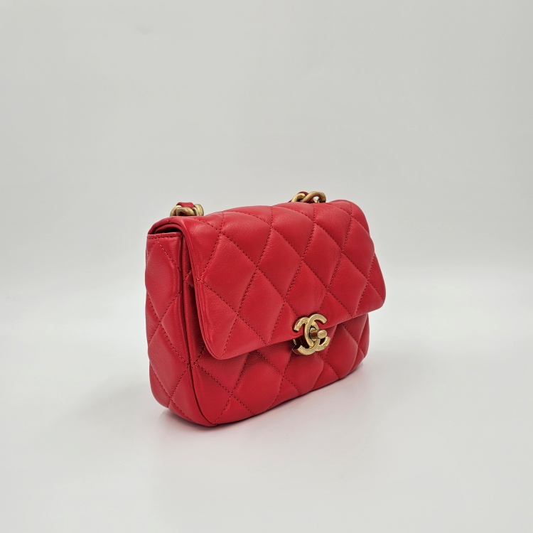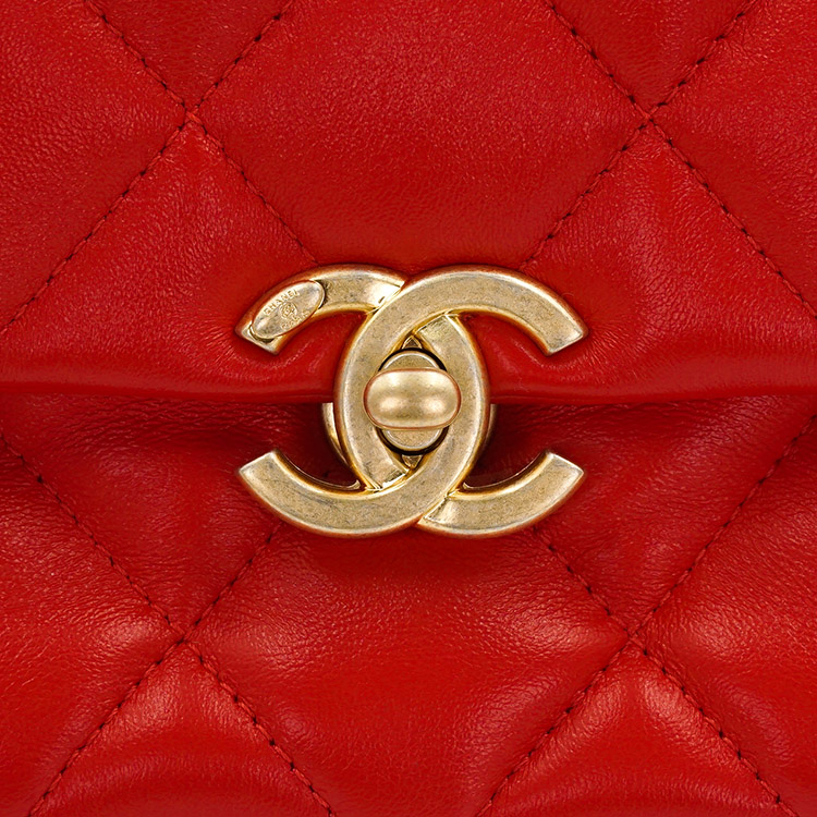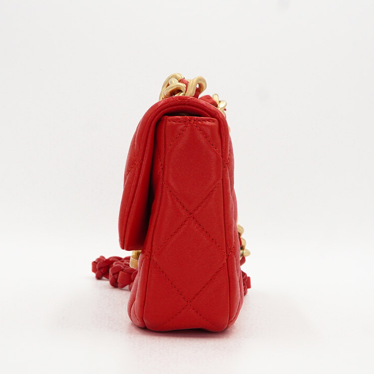 색상 / 소재 : 레드 계열 / 양가죽 (램스킨), 레드 계열 / 폴리에스터 안감, 빈티지 금장 하드웨어
