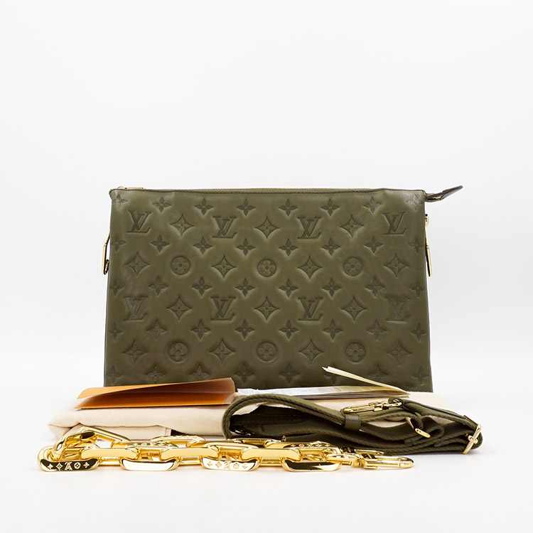 색상 / 소재 : 카키 계열 / 송아지 가죽, 딥카키 계열 / 마이크로 화이버 안감, 금장 하드웨어