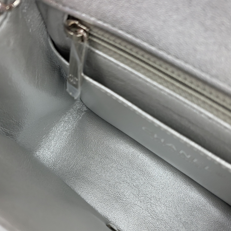 색상 / 소재 : 메탈릭 실버 계열/양가죽(램스킨), 메탈릭 실버 계열/양가죽(램스킨) 내피, 은장 하드웨어