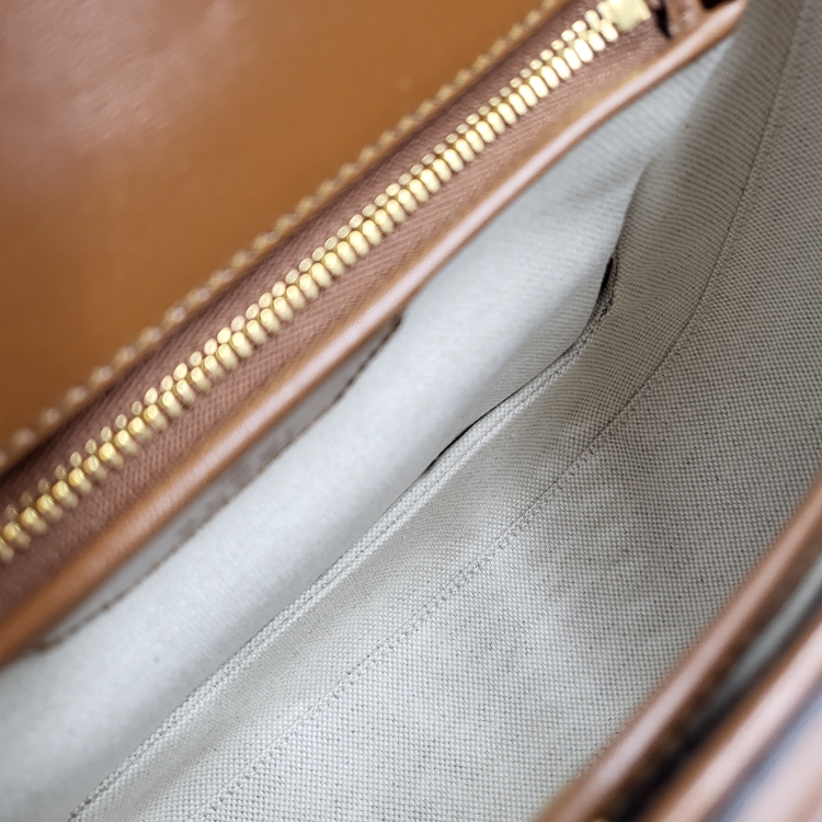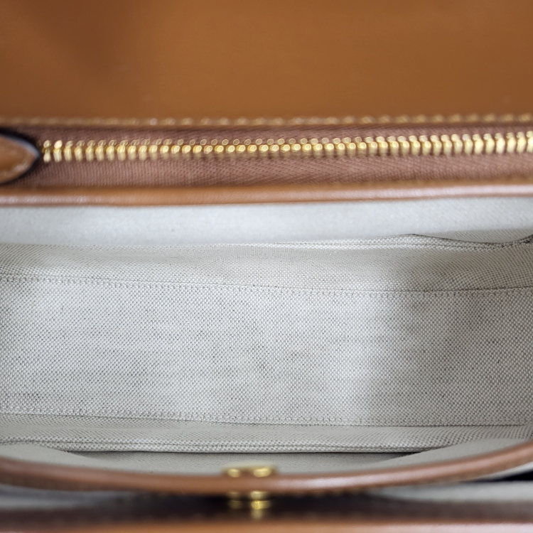 색상 / 소재 : 브라운 계열/가죽, 베이지 계열/면 캔버스안감, 빈티지 금장 하드웨어