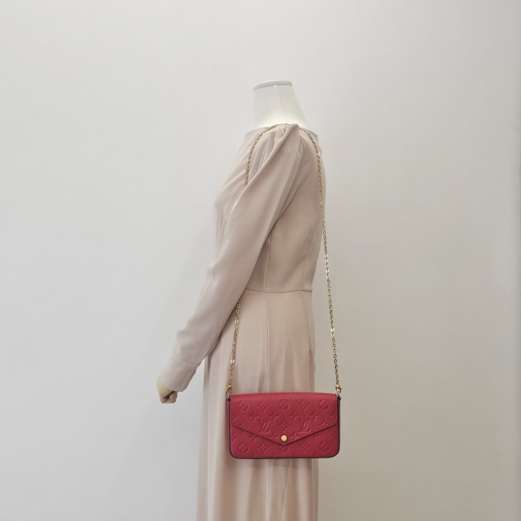 색상 / 소재 : 레드계열/가공한 소가죽(앙프렝뜨), 레드계열/면캔버스 안감, 금장 하드웨어