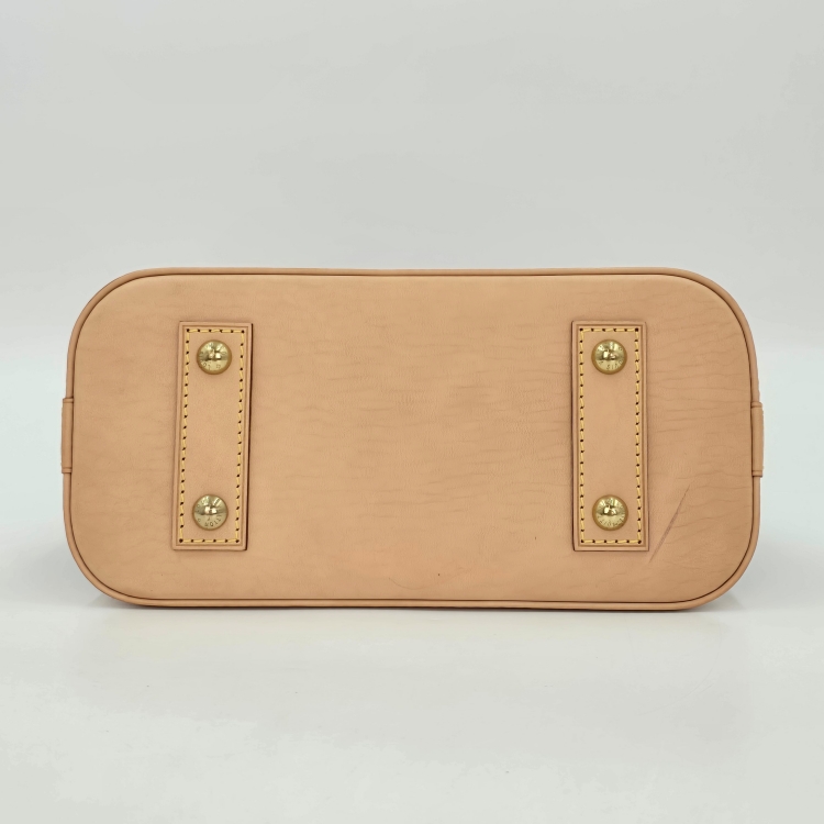 핸들을 포함한 가방의 하단과 바닥면에 사용된 카우하이드 (밝은색의 천연가죽)에
