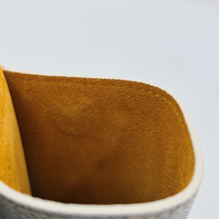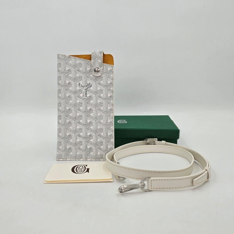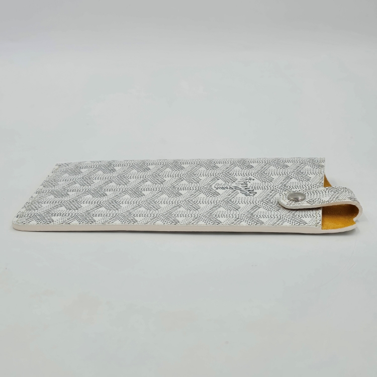 색상 / 소재 : 케이스 : 화이트 계열/고야드 코팅캔버스, 옐로우 계열/ 벨루어 카프 스킨 내피, 은장 하드웨어