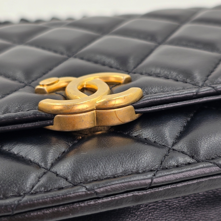정면의 CC로고 잠금 장치의 아래쪽 측면에 잔 스크래치가 있는데