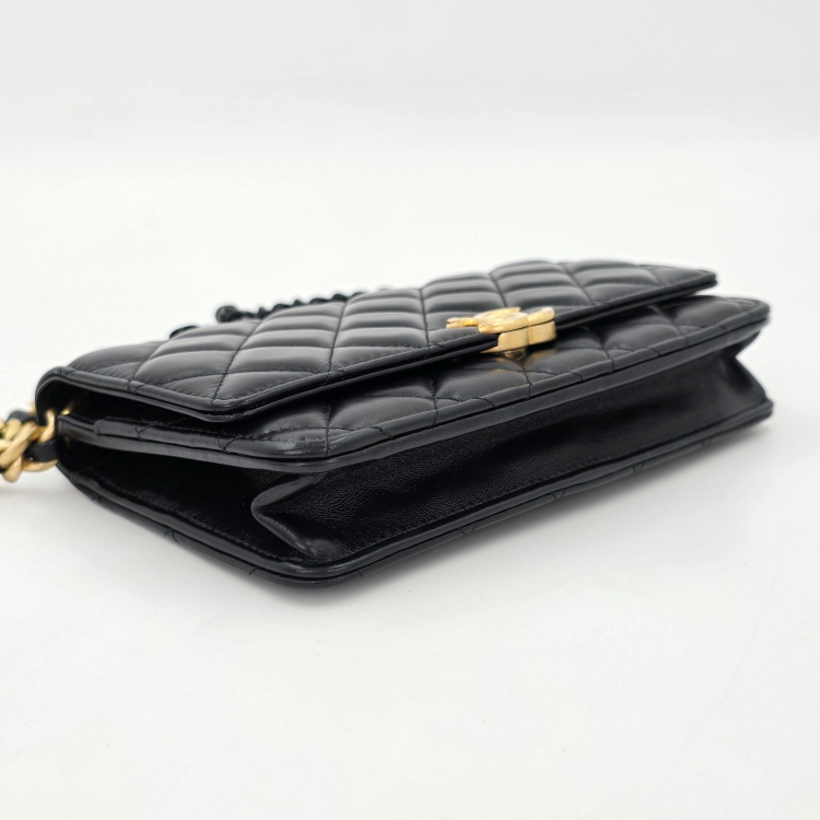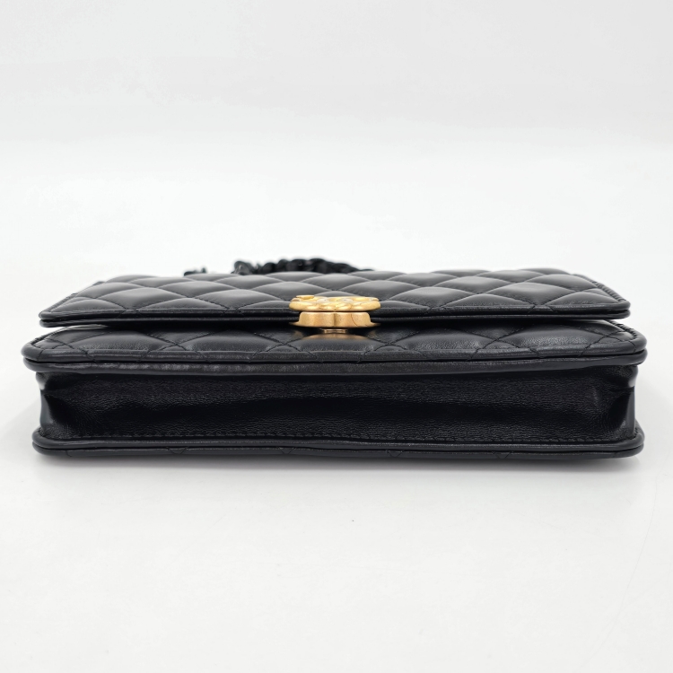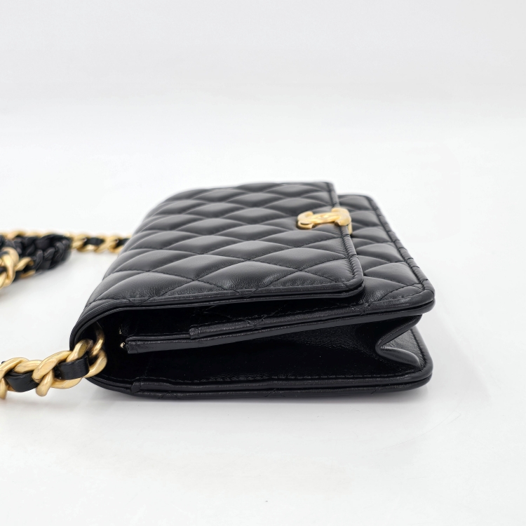 색상 / 소재 : 블랙/램스킨, 블랙/폴리에스터 안감, 금장,래커드메탈 하드웨어