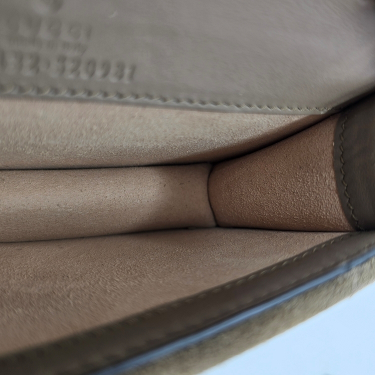 여닫이를 열었을 때 보이는 스웨이드 부분에 잠금장치 토트가 닿아서 생긴 눌림 자국이 있습니다.