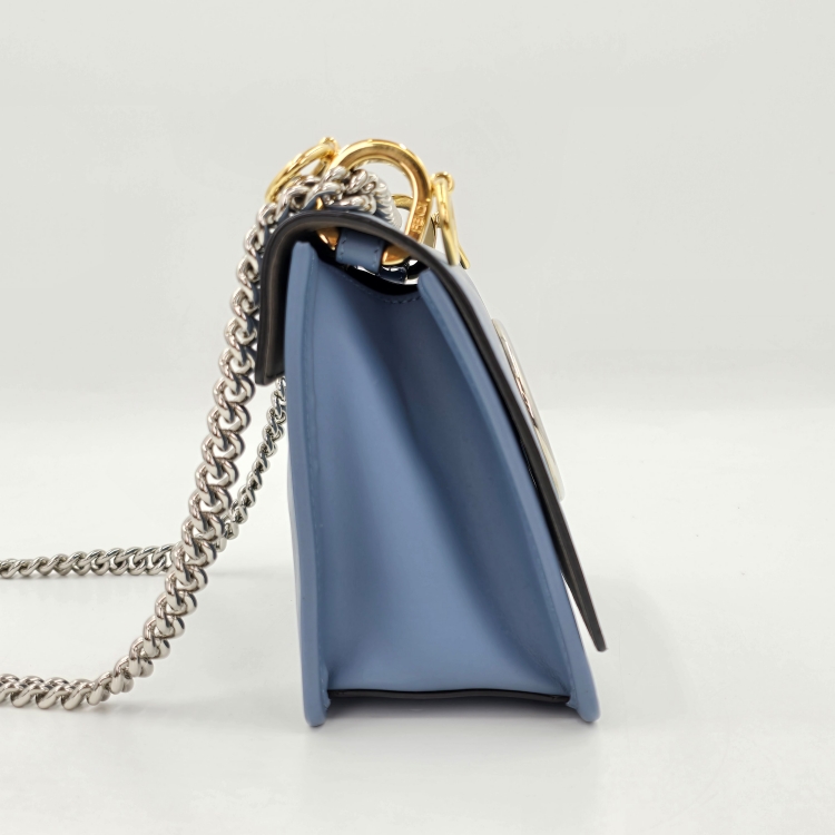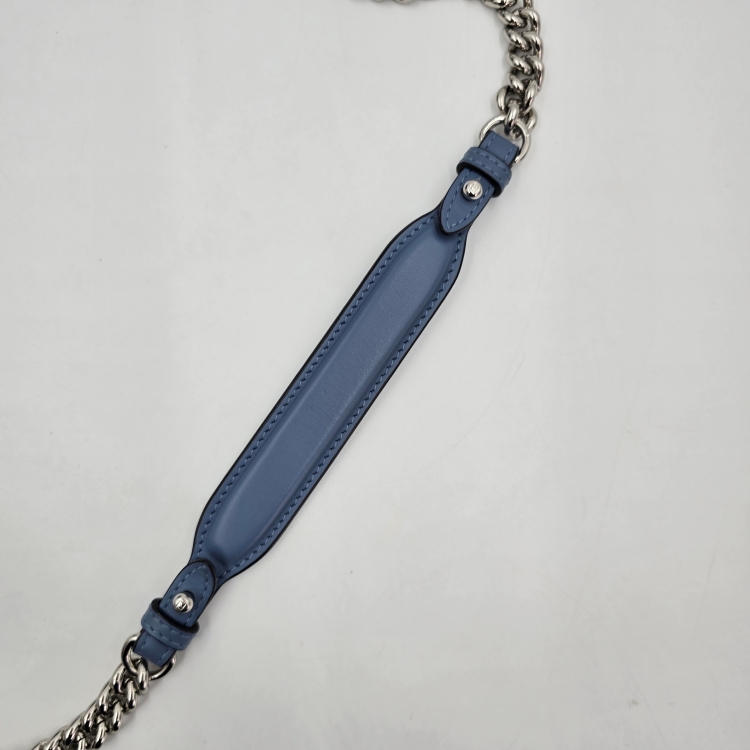 체인 스트랩과 연결된 가죽 띠 부분에 잔 주름감이 있습니다.