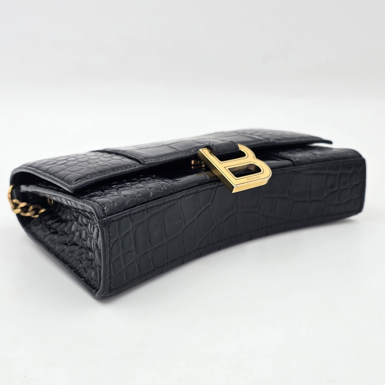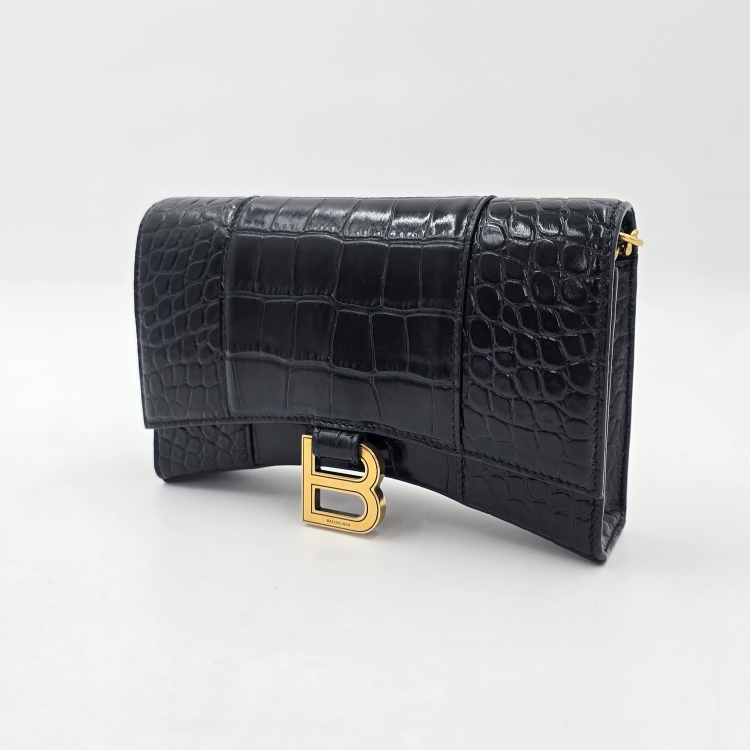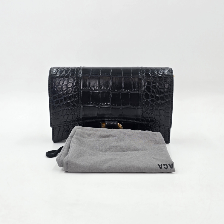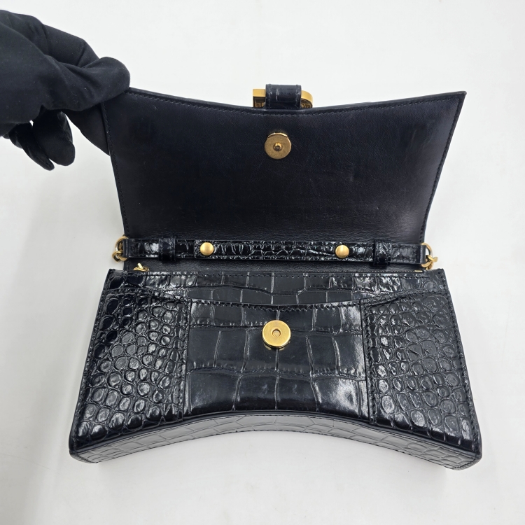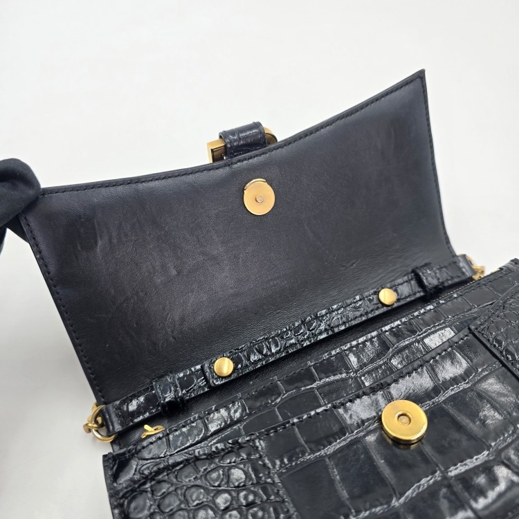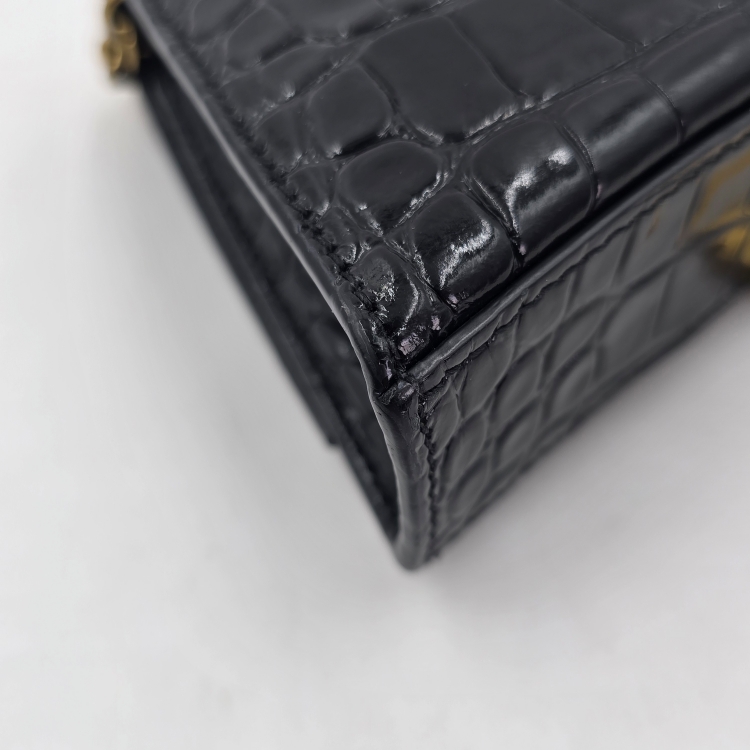 색상 / 소재 : 블랙/크로커다일 패턴 소가죽, 블랙/카프스킨 내피, 빈티지 금장 하드웨어