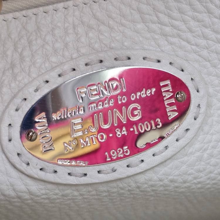 가방 내부 벽면의 메탈 소재 태그에 이니셜 각인(E.JUNG)이 있습니다.