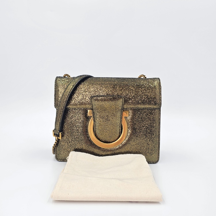 색상 / 소재 : 골드 메탈릭/가공한 소가죽, 블랙/카프스킨 내피, 빈티지 금장 하드웨어