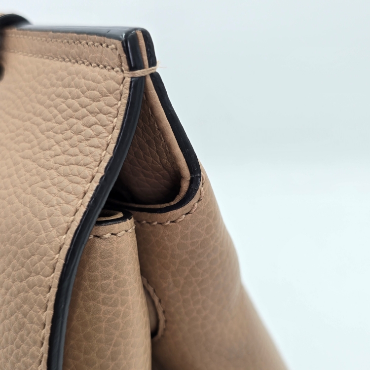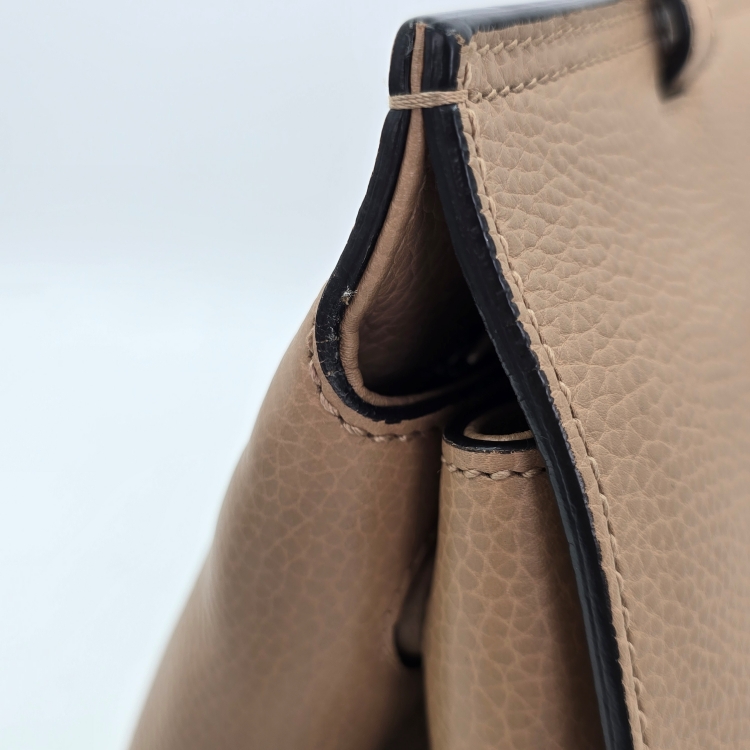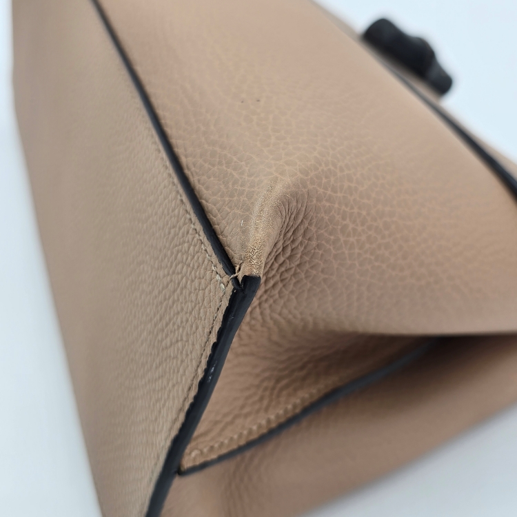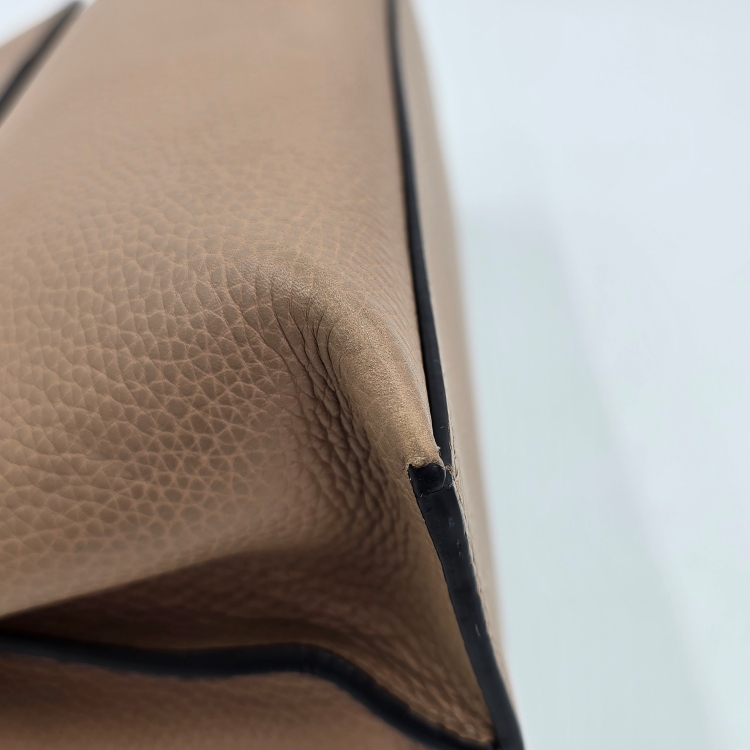 가방의 측면에서 바닥 면으로 이어지는 모서리 테두리에 잔 마모감이 있는데 매우 옅은 정도입니다.