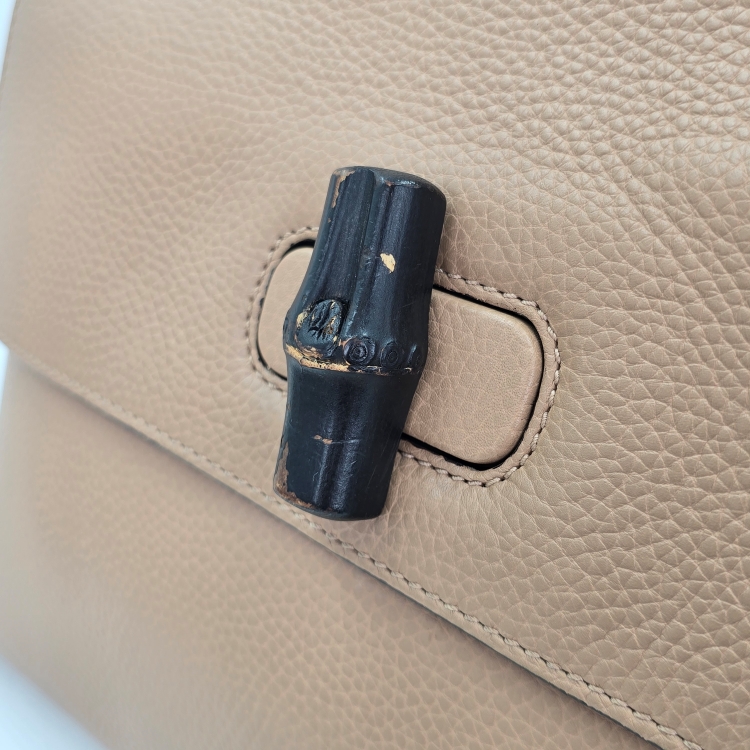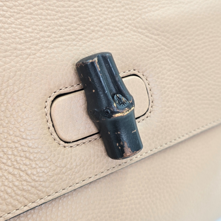 정면에 위치한 뱀부 잠금 장치 디테일 표면의 칠 벗겨짐과 잔 마모감이 있습니다.