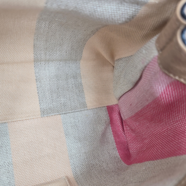 색상 / 소재 : 라이트 브라운 계열/소가죽, 베이지(멀티컬러)계열/면캔버스 안감, 은장 하드웨어