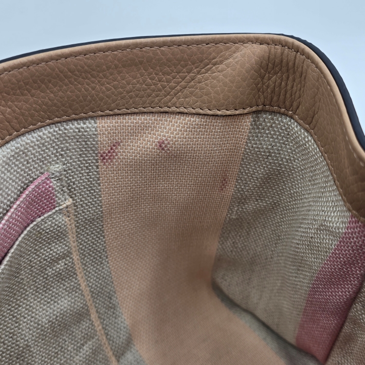 가방 내부 안감에는 바닥 면과 벽면에 붉은 빛 등의 생활 이염이 있습니다.