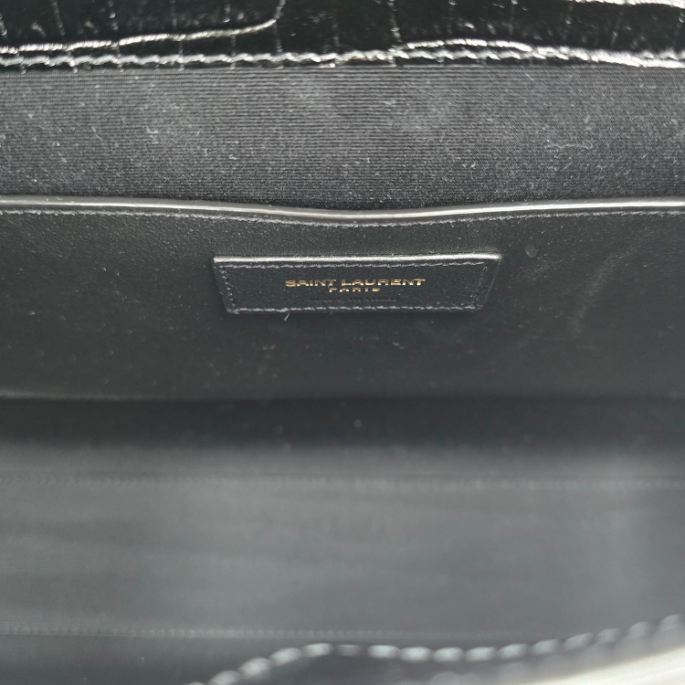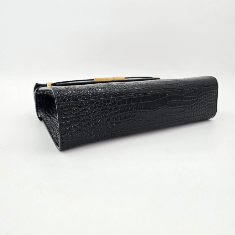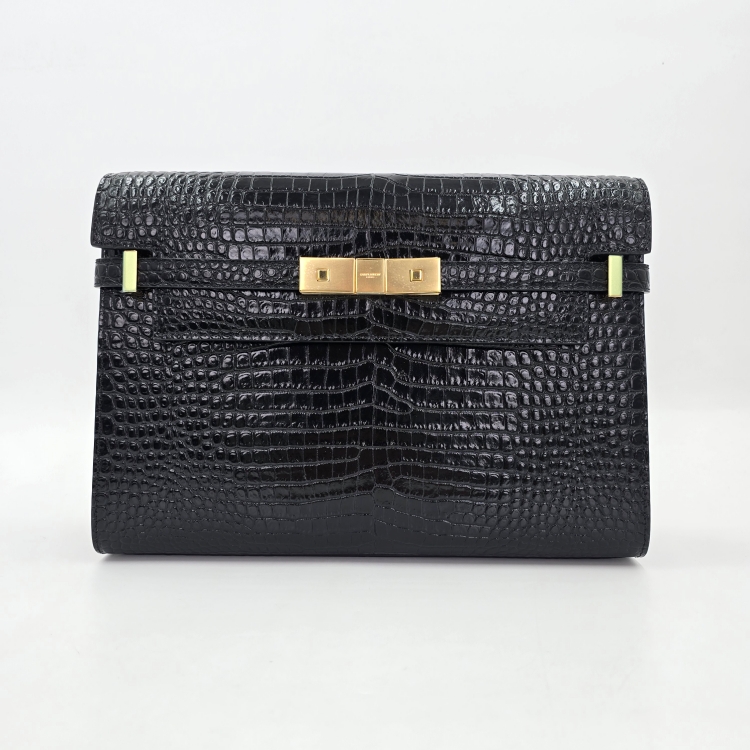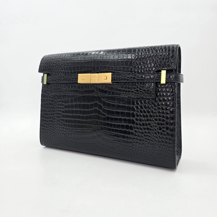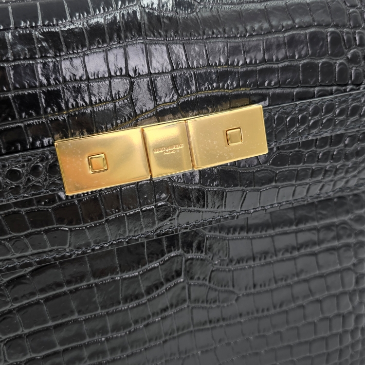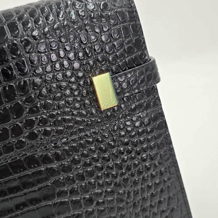 색상 / 소재 : 블랙/크로커다일 패턴 소가죽, 블랙/면캔버스 안감, 금장 하드웨어