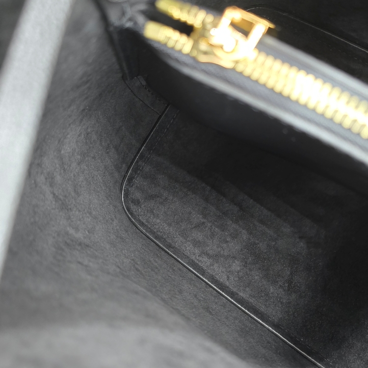 색상 / 소재 : 블랙/가공한 소가죽(앙프렝뜨), 블랙/마이크로 화이버 안감, 금장 하드웨어