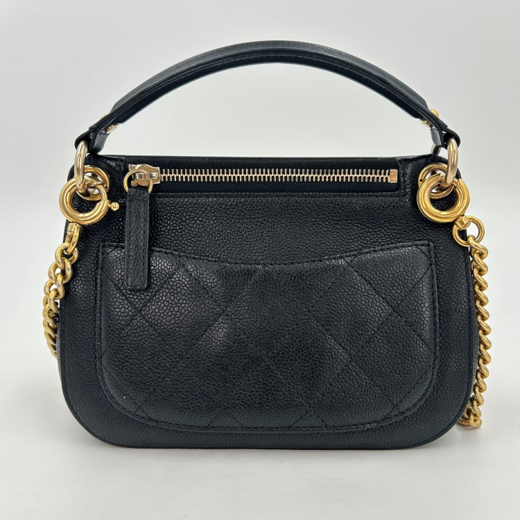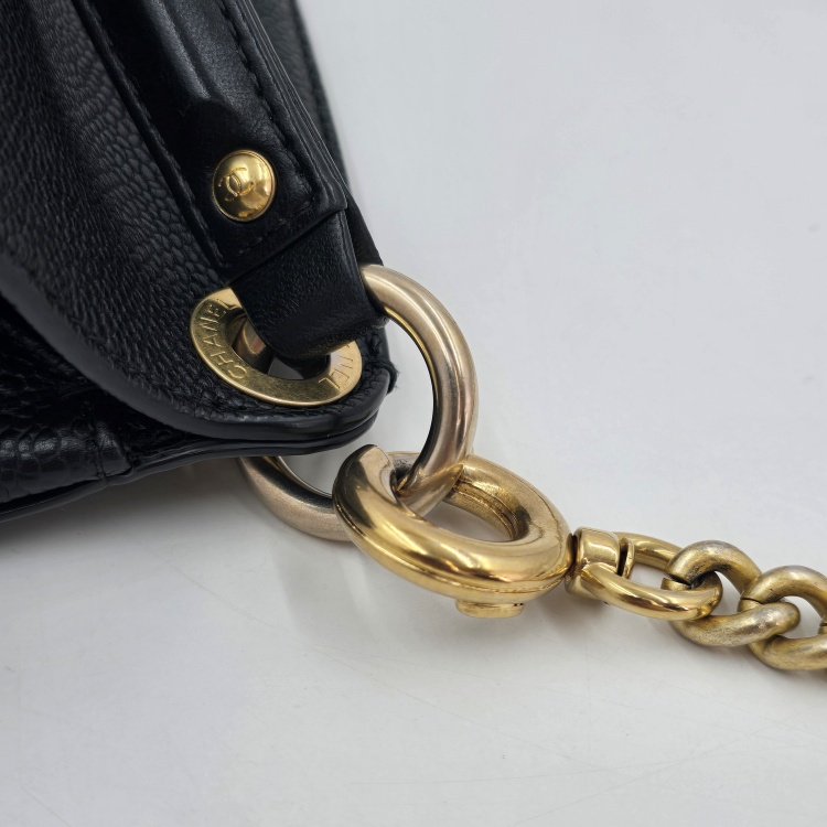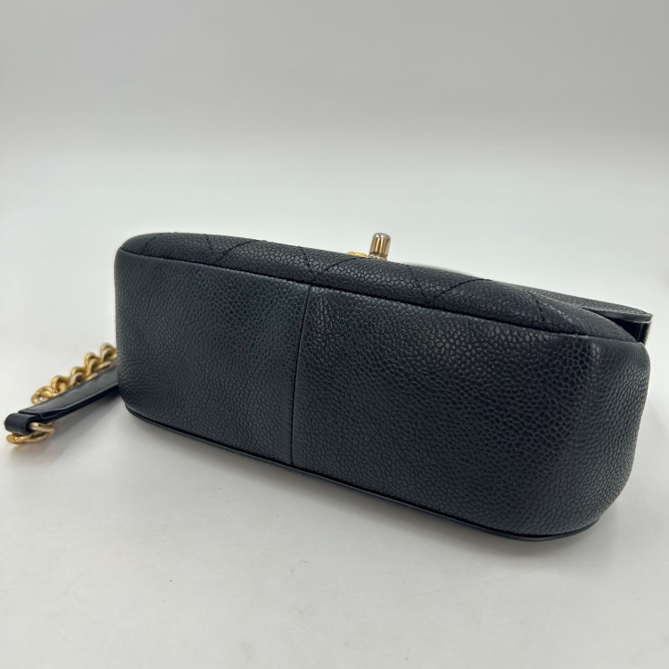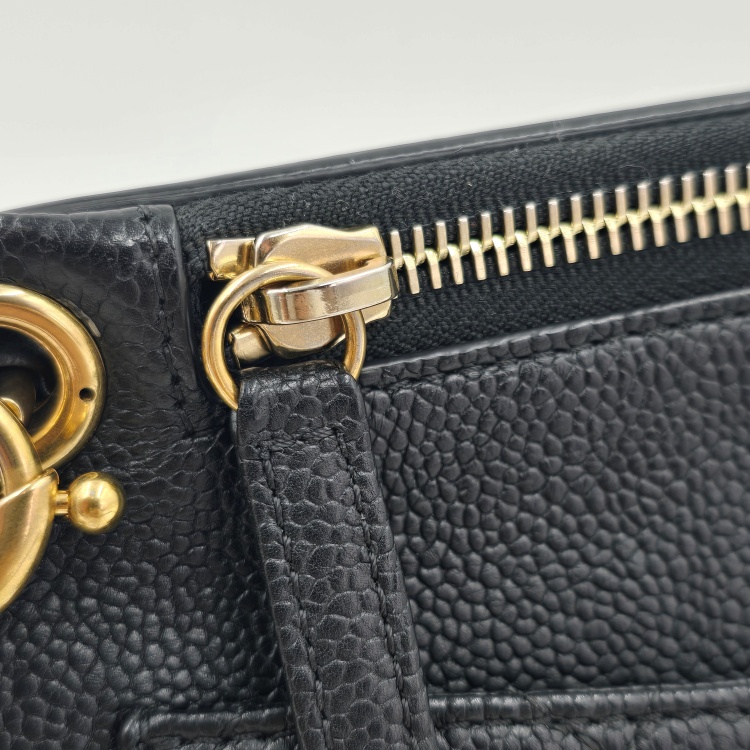색상 / 소재 : 블랙/그레인 카프스킨(캐비어), 블랙/면캔버스 안감, 빈티지 금장 하드웨어