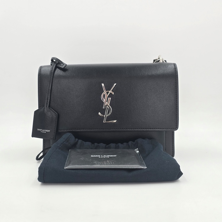 정면에 위치한 YSL로고 디테일과 여닫이 금속 도트에는 옅은 정도의 생활감이 있습니다.