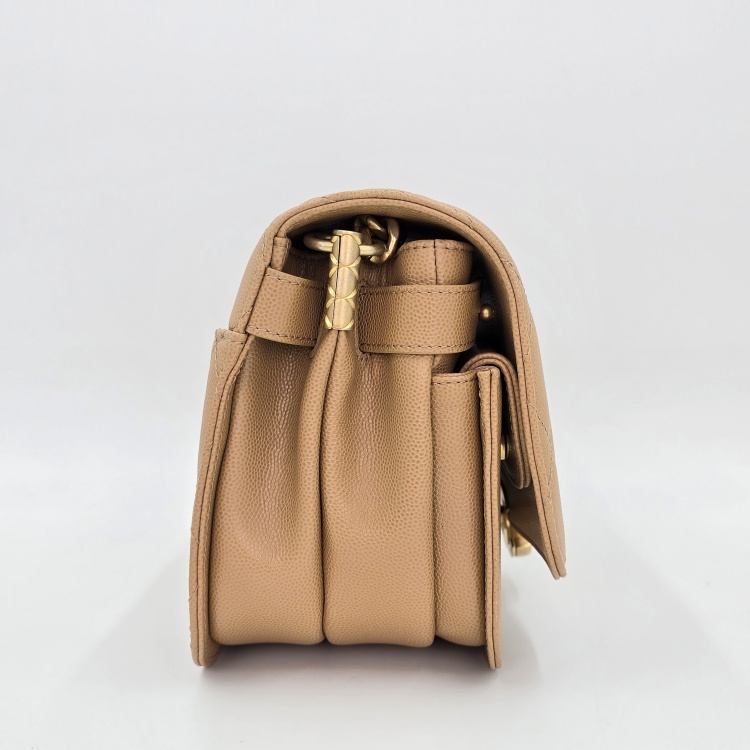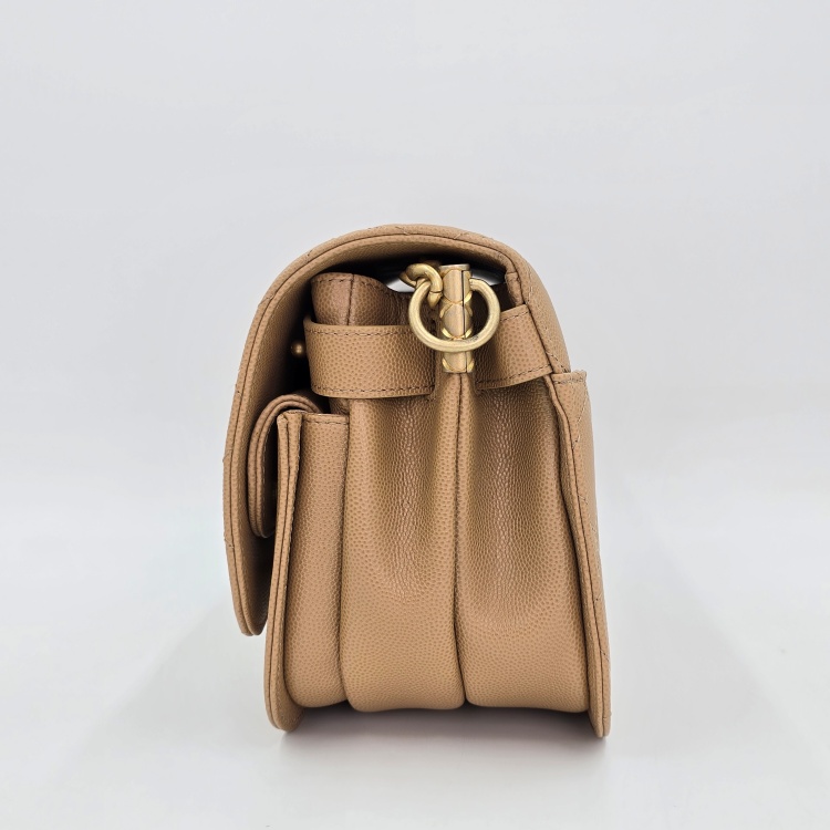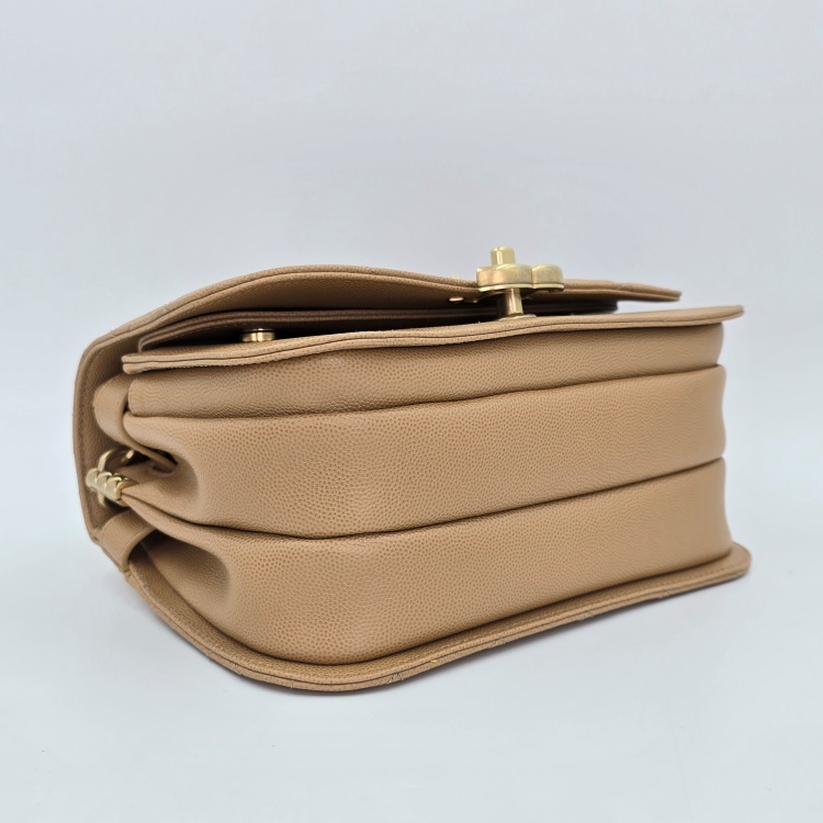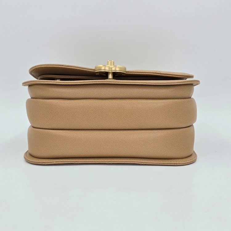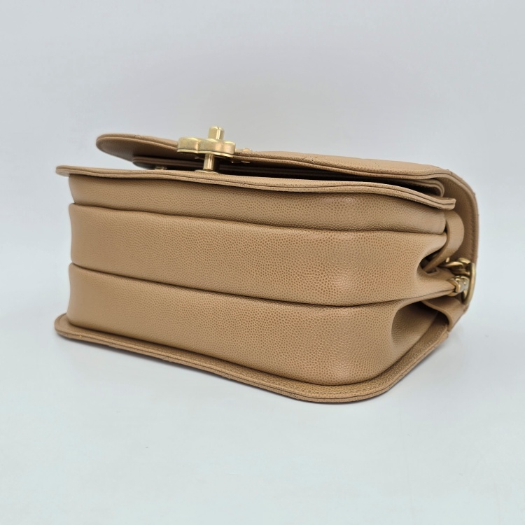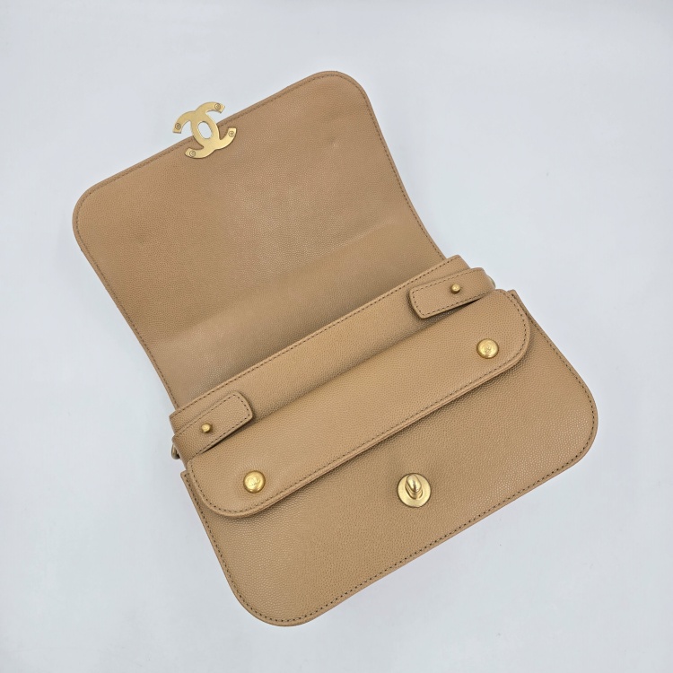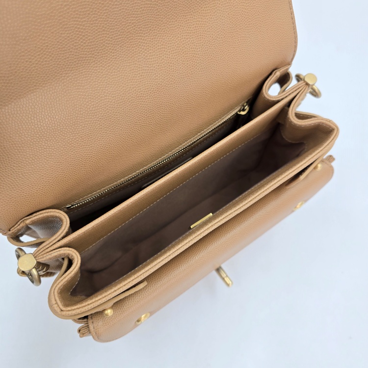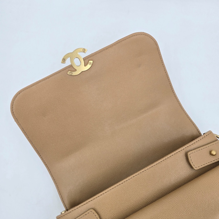 색상 / 소재 : 라이트브라운 계열/그레인 카프스킨(캐비어), 라이트 브라운 계열/면캔버스 안감, 빈티지금장 하드웨어