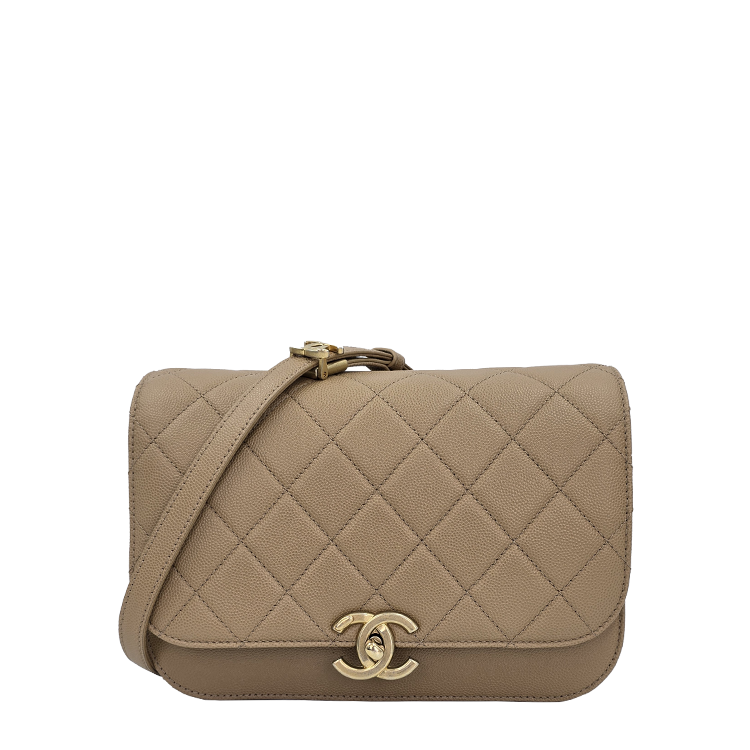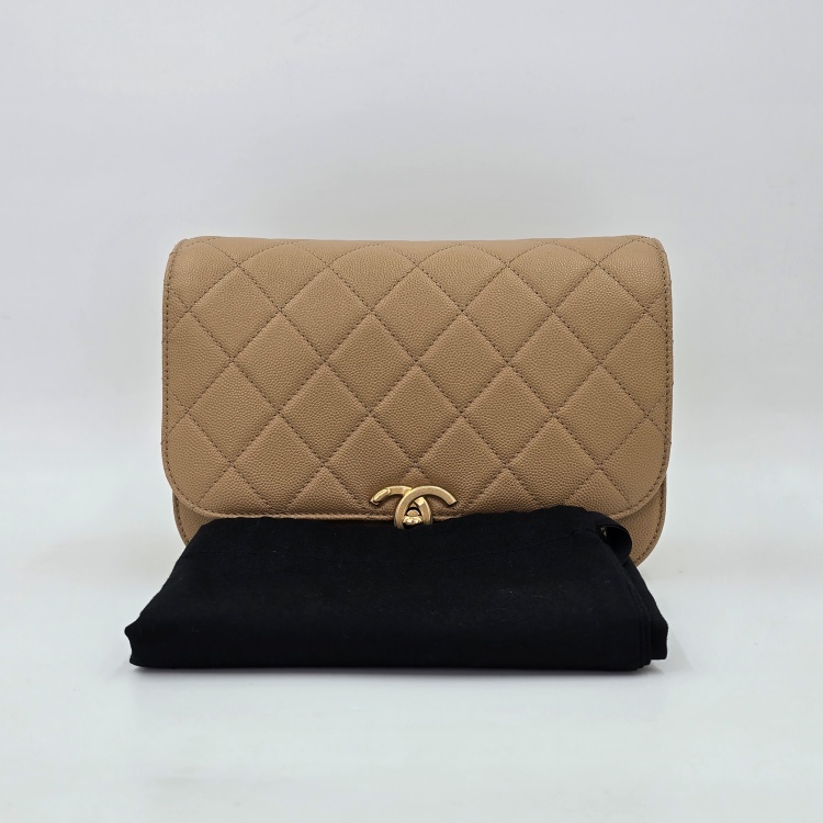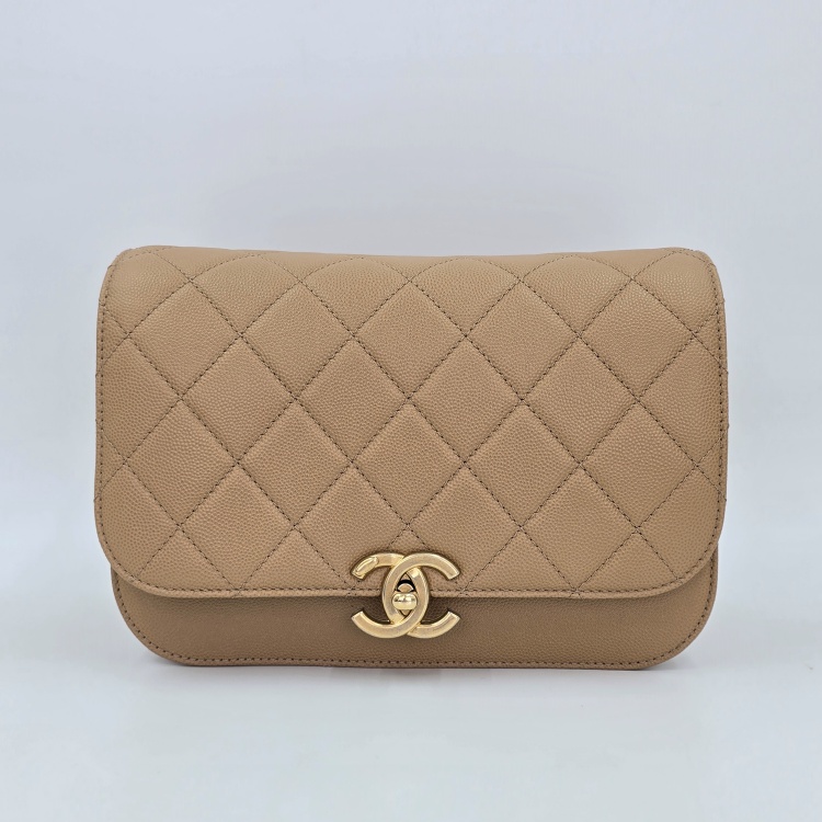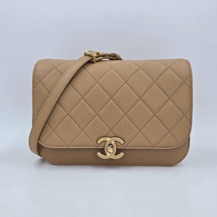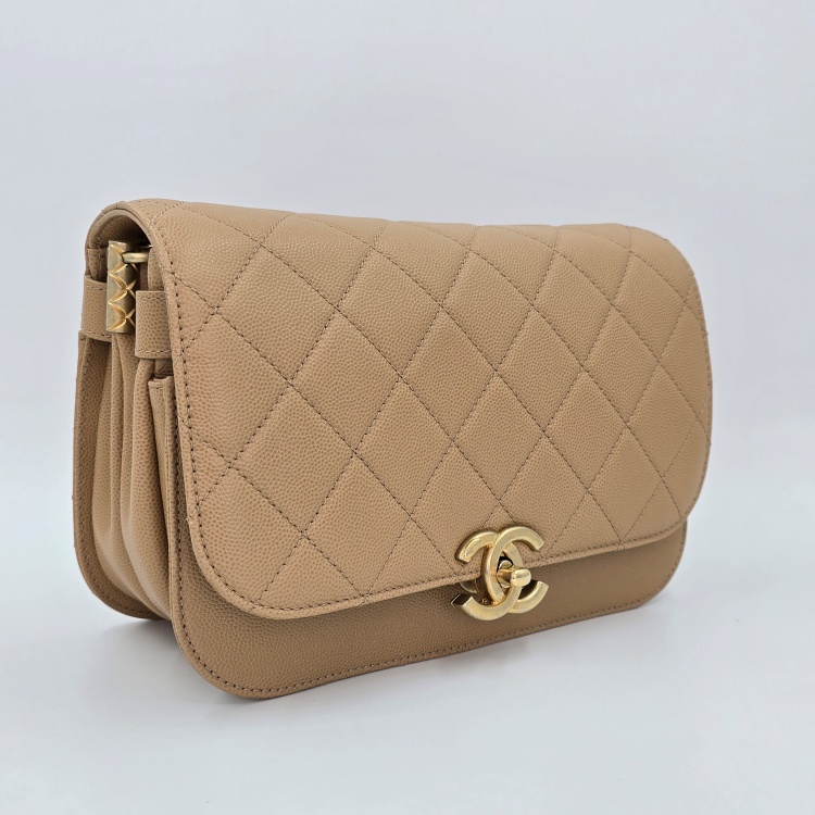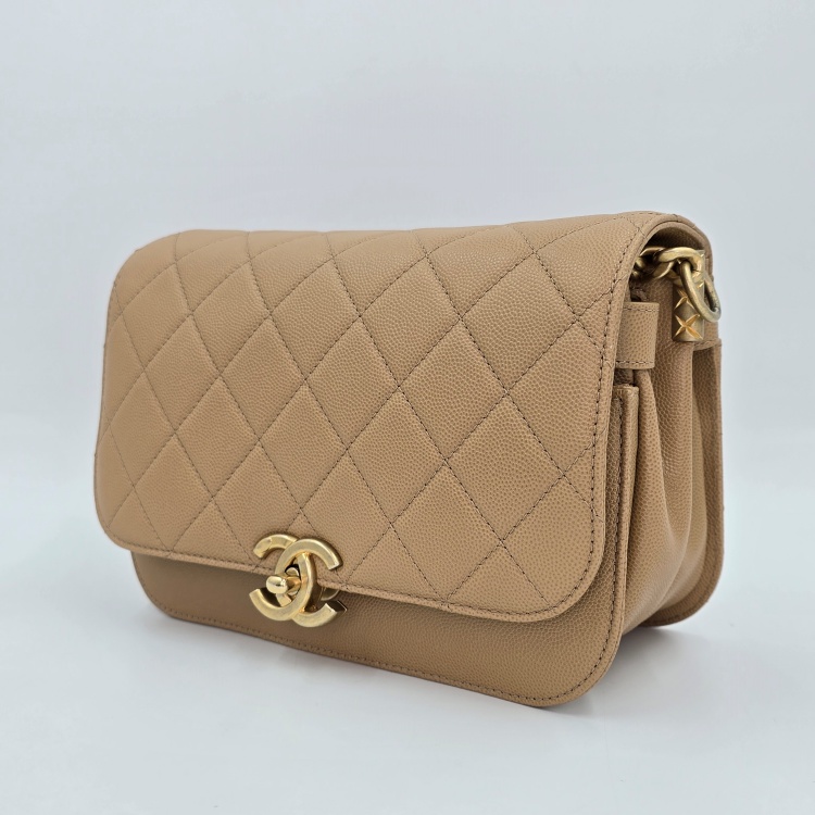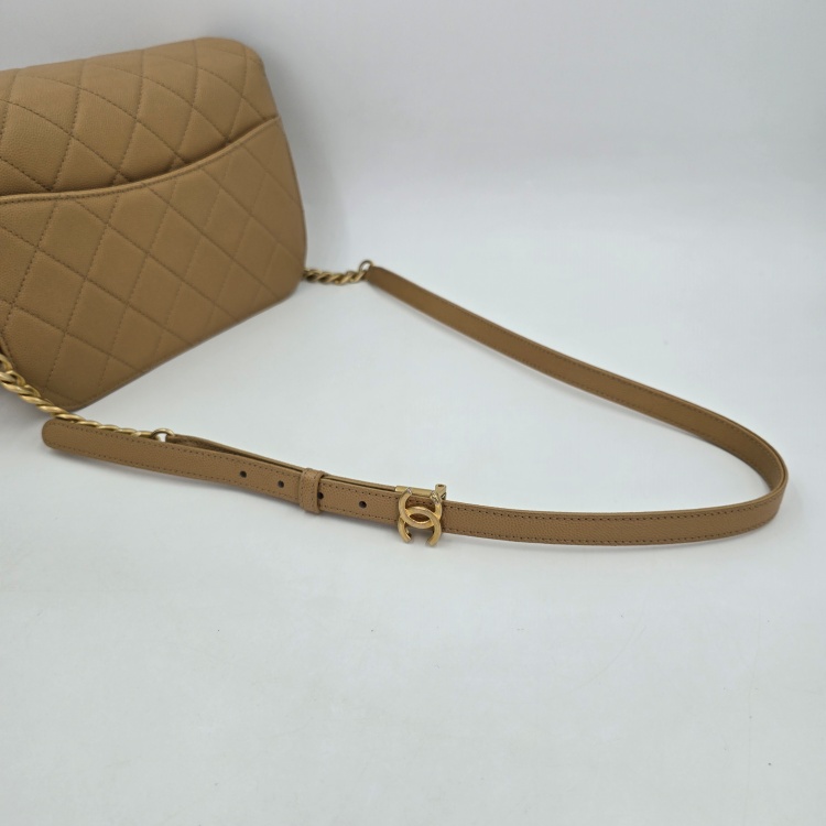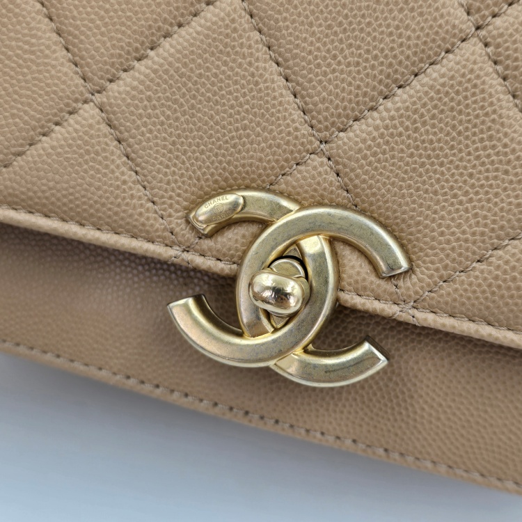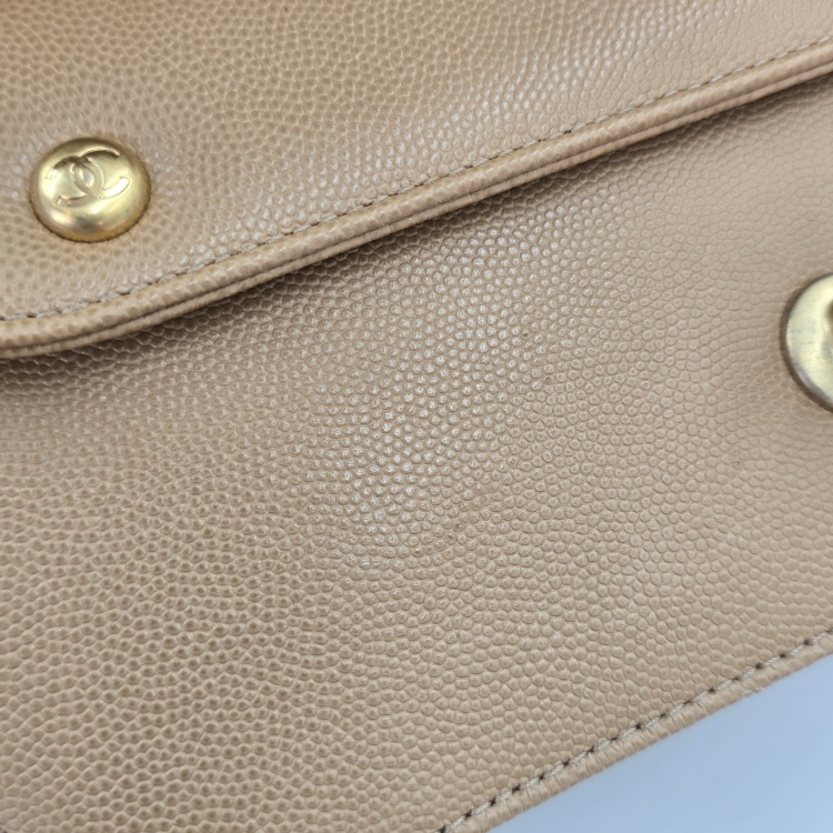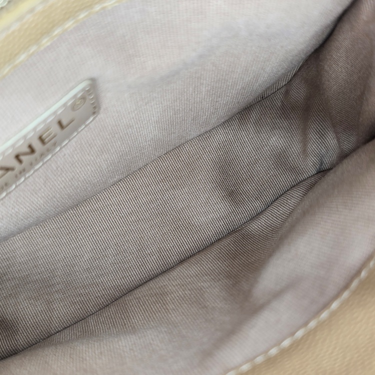 정면의 CC로고 디테일과 여닫이 금속, 체인 스트랩에는 최소한의 생활감 정도가 확인됩니다.