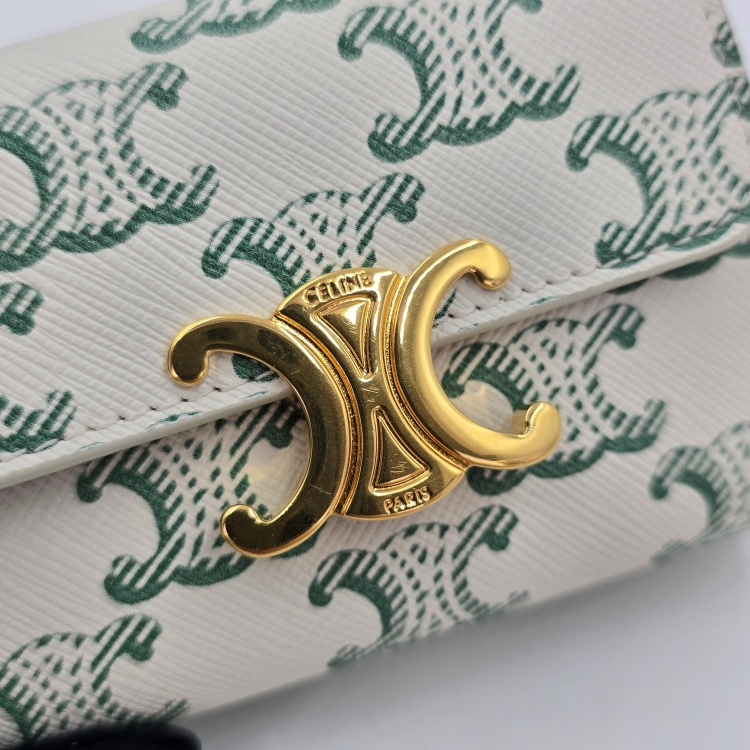 색상 / 소재 : 크림, 그린 멀티/트리오페 코팅 캔버스, 브라운 계열/카프스킨 내피, 금장 하드웨어