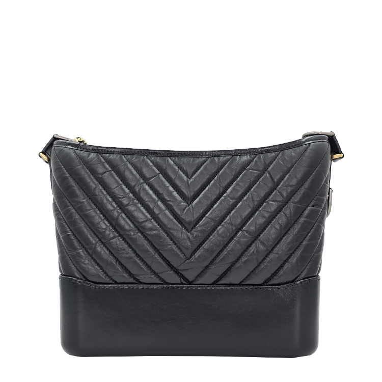 빈티지 카프스킨 소재의 질감과 쉐브론 퀼팅이
