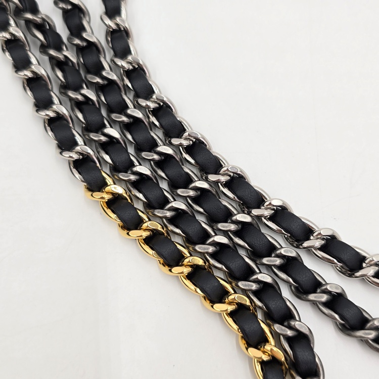 체인 스트랩과 연결된 가죽 스트랩에 약한 굴곡감이 있는데