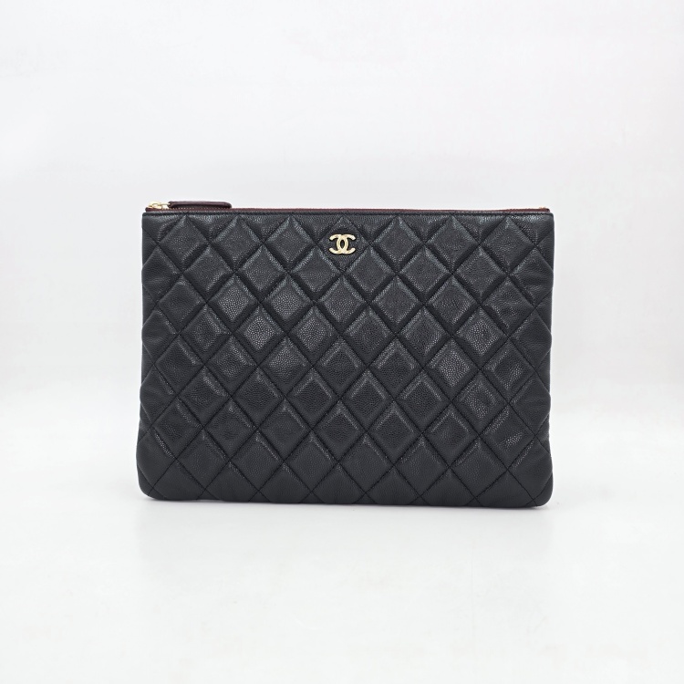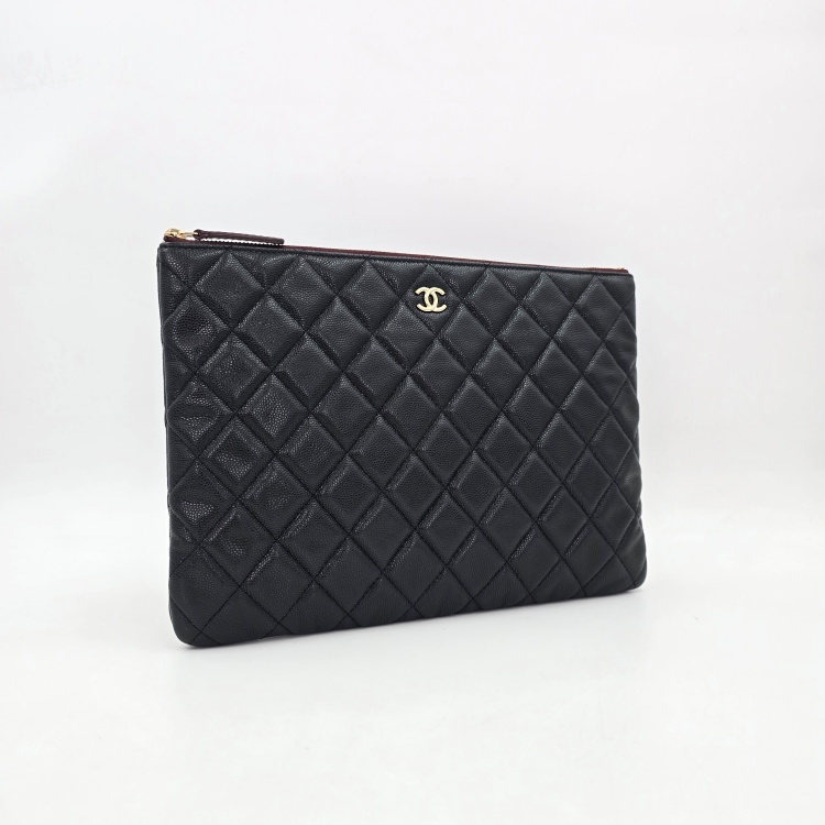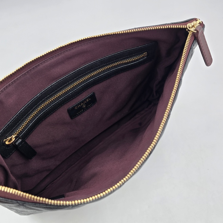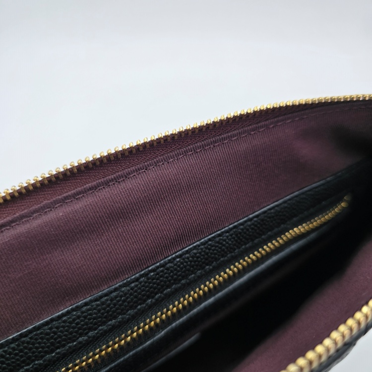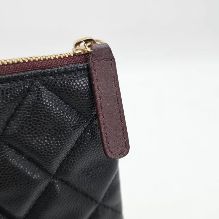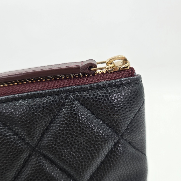 색상 / 소재 : 블랙/그레인 카프스킨(캐비어), 버건디 계열/면캔버스 안감, 금장 하드웨어