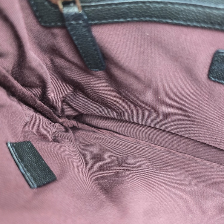 내부 안감의 상단 테두리 부분에 잔 때탐이 있는데 매우 옅은 정도입니다.