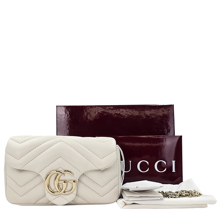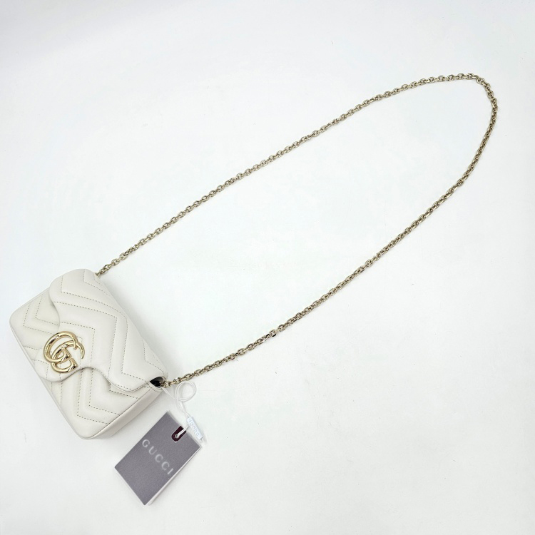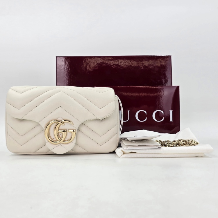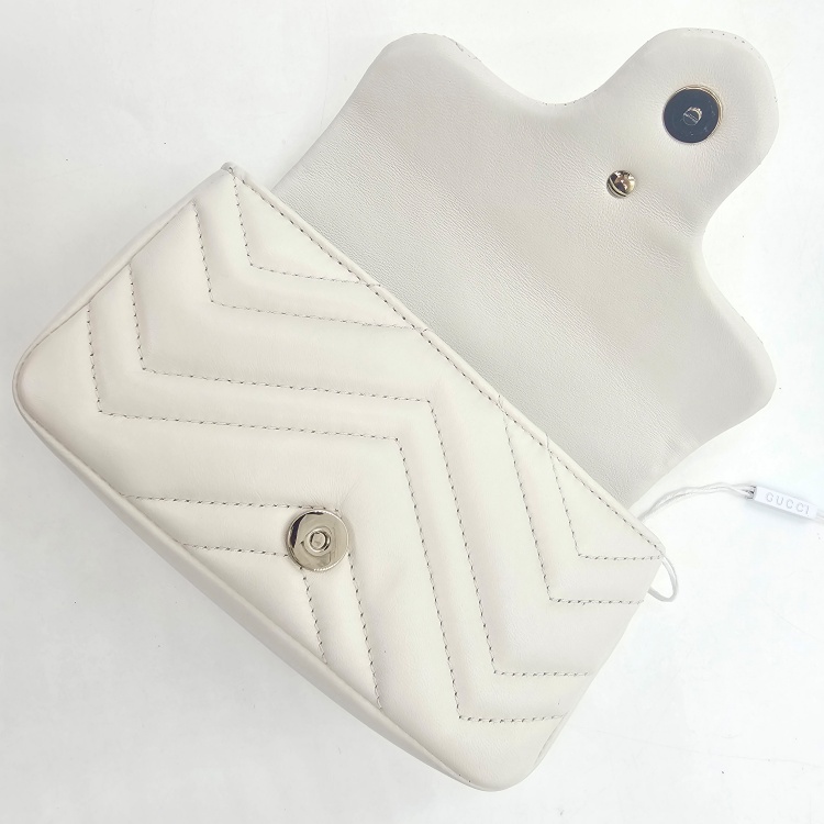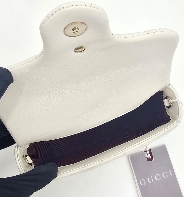 정면에 위치한 GG로고 디테일과 여닫이 금속에는 최소한의 사용감이 있습니다.