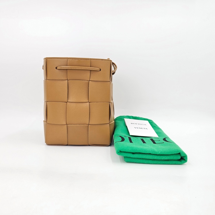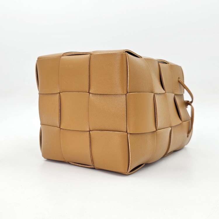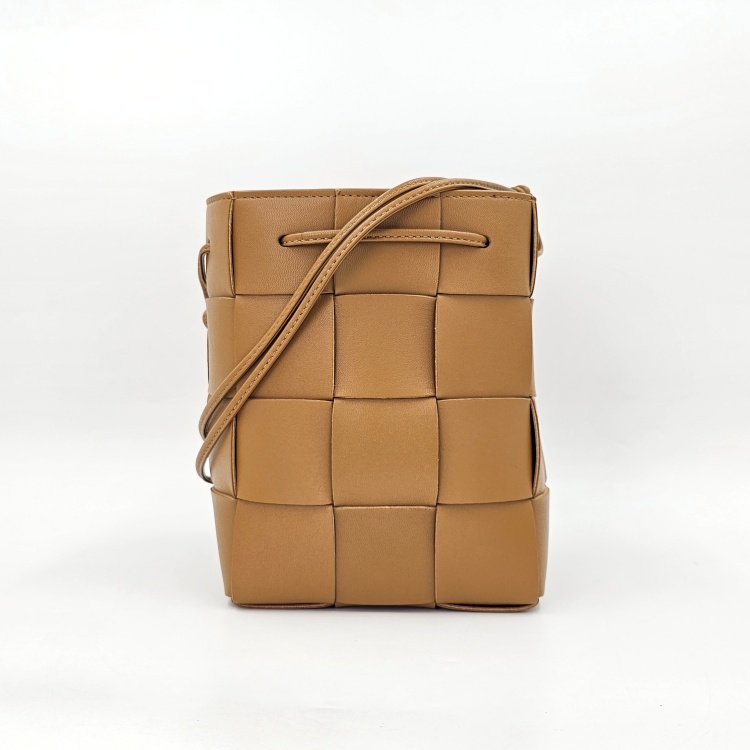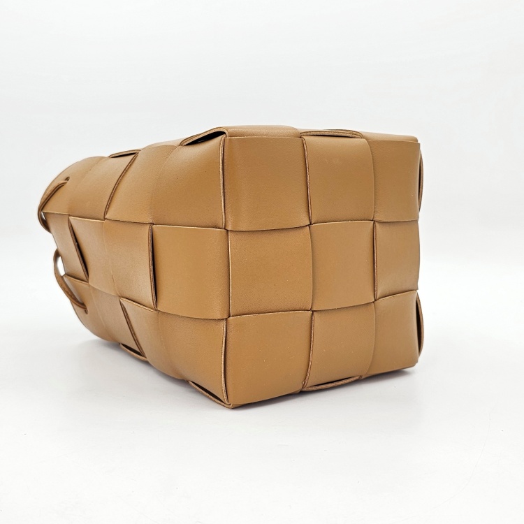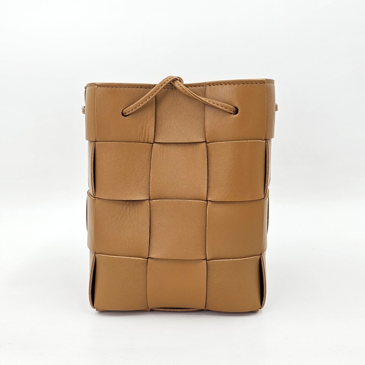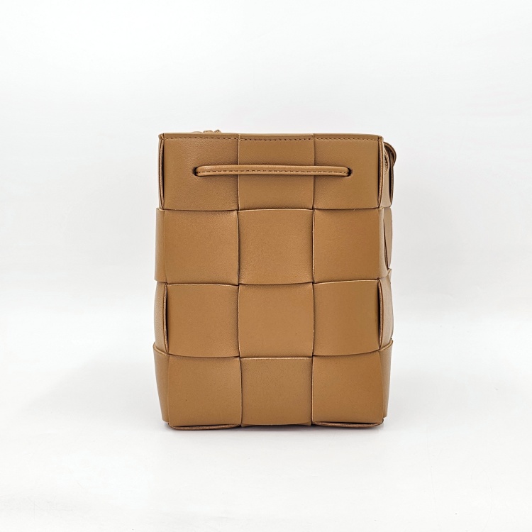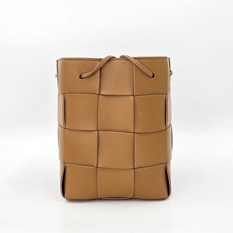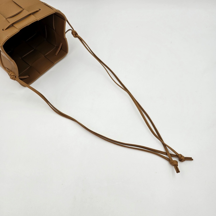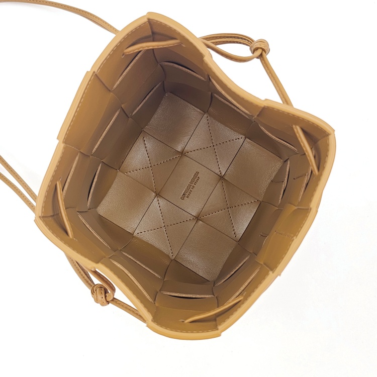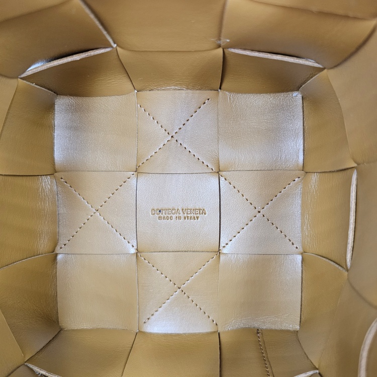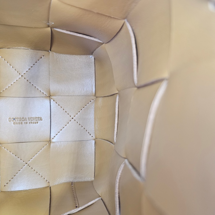입구를 감싸고 매듭 진 형태로 마감된 가죽 스트랩에는 약한 정도의 굴곡감이 있고