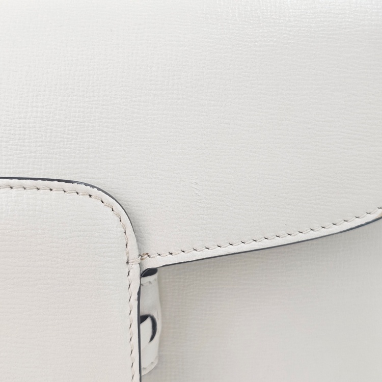 스트랩과 가방이 연결된 부분 가죽의 유약칠 갈라짐이 옅게 확인됩니다.