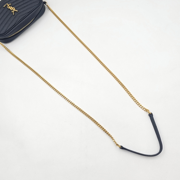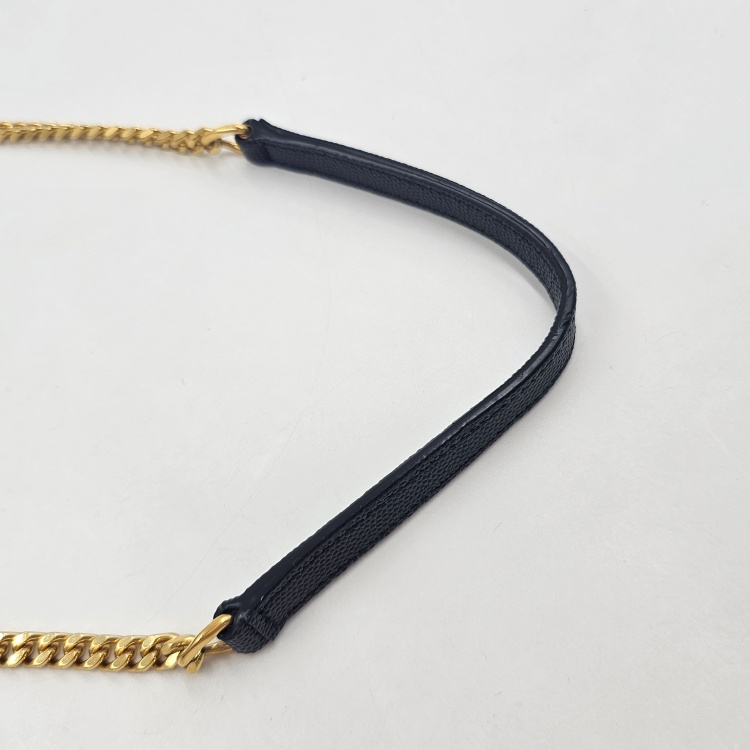 체인 스트랩과 연결된 가죽 패드에 굴곡감과 결 눌림감이 있습니다.