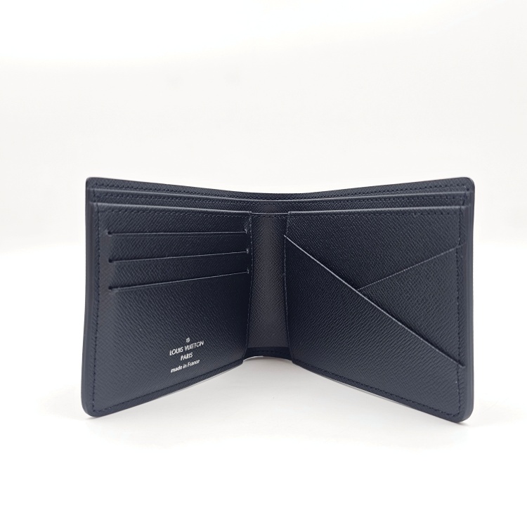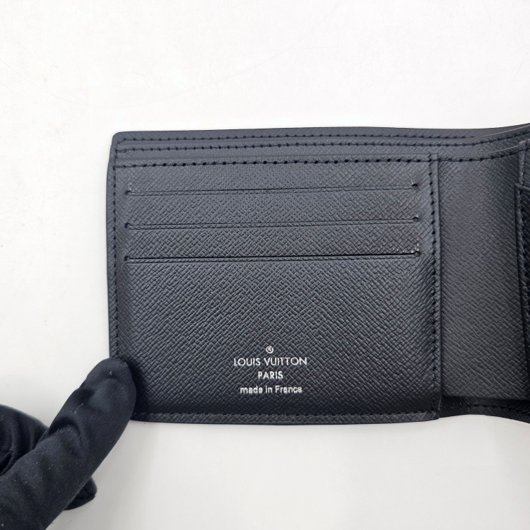 지갑을 펼쳤을 때 보이는 왼편의 루이비통 영문 로고 스템핑에 부분적으로 칠 떨어짐이 있는데
