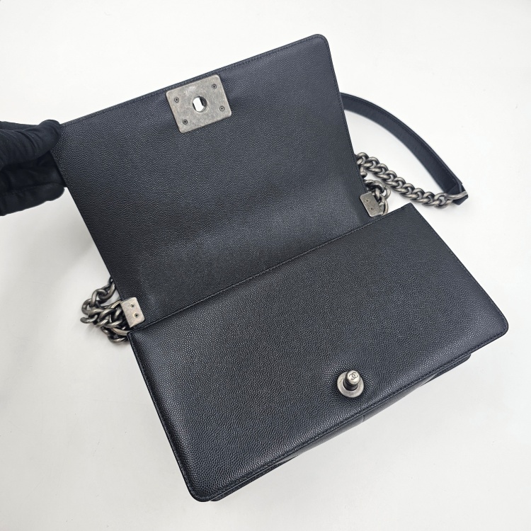 색상 / 소재 : 블랙/그레인 카프스킨(캐비어), 블랙/폴리에스터 안감, 빈티지 은장 하드웨어
