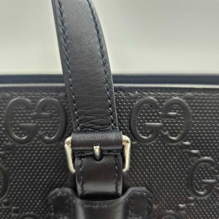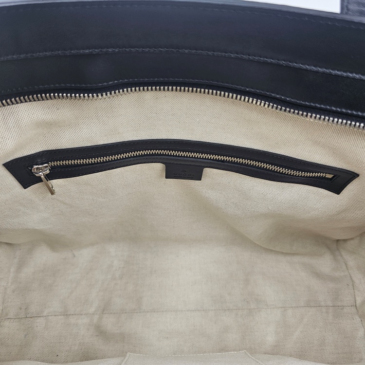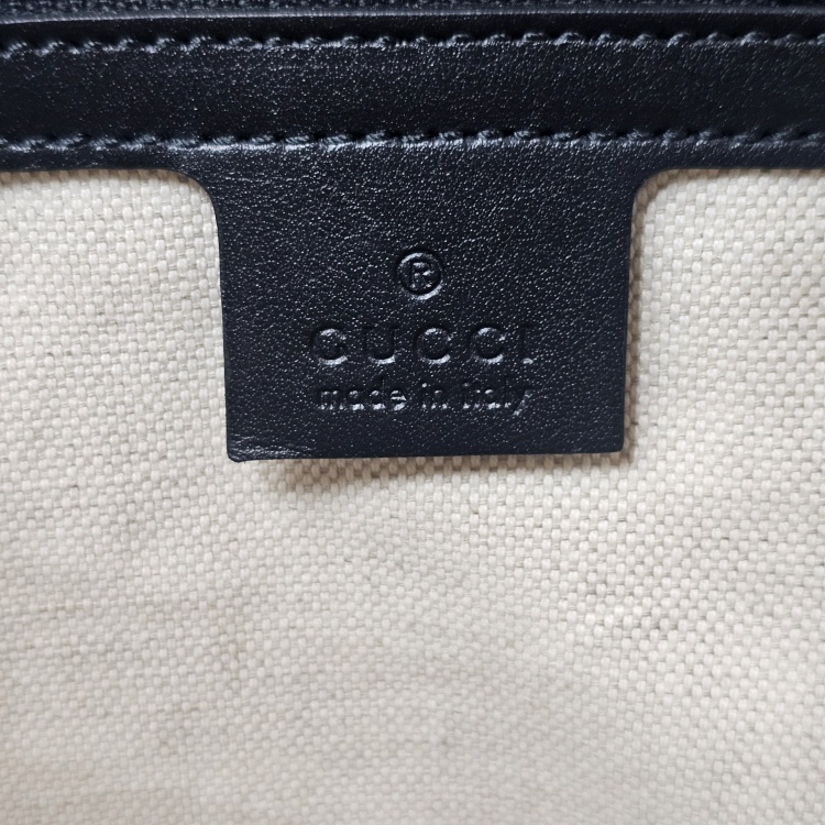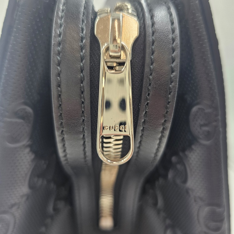 색상 / 소재 : 블랙/가공한 소가죽(gg엠보), 베이지 계열/면캔버스 안감, 은장하드웨어