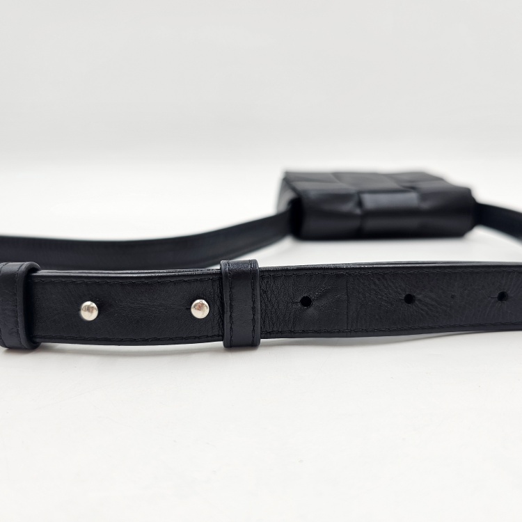 가죽 스트랩에는 잔 주름감이 있고 길이 조절 홀 부분에