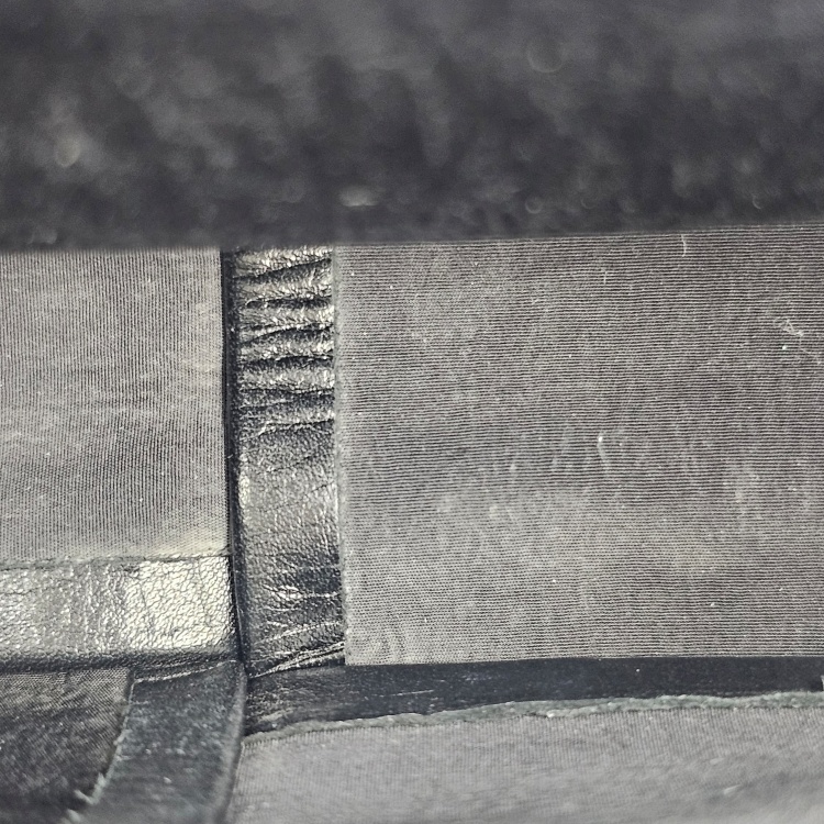 내부 벽면 포켓에는 잔 때탐과 이음새의 실 올 도드라짐이 있는데