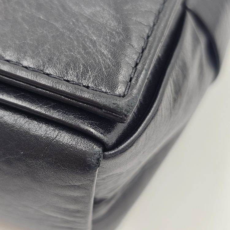 색상 / 소재 : 블랙/램스킨(양가죽), 블랙/폴리에스터 안감, 빈티지은장 하드웨어